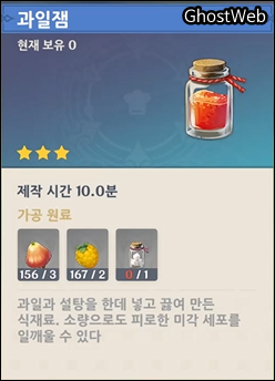 과일잼 일몰 열매(3) : 야외 채집 라즈베리(2) : 야외 채집 설탕(1) : 요리 가공 획득 판매 : 몬드성 디어헌터 사라 음식 : 몬드 감자전 |
