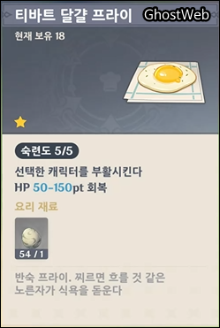 티바트 달걀 프라이 (새알 1) 선택한 캐릭터를 부활 HP 50~150pt 회복 |