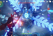 가운데 있는 장치를 작동하면 불의 신령이 얼음 장치 기둥을 돌아다니는데 이 순서에 맞게 얼음 원소 캐릭터로 얼음 장치를 활성화하면 가디언과 전투를 시작하며 전투가 끝나면 가운데 있는 얼음이 깨져 <얼음 기둥>이 있는 지하 공간으로 들어갈 수 있어요.