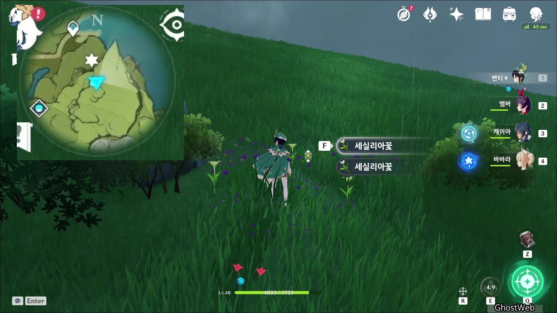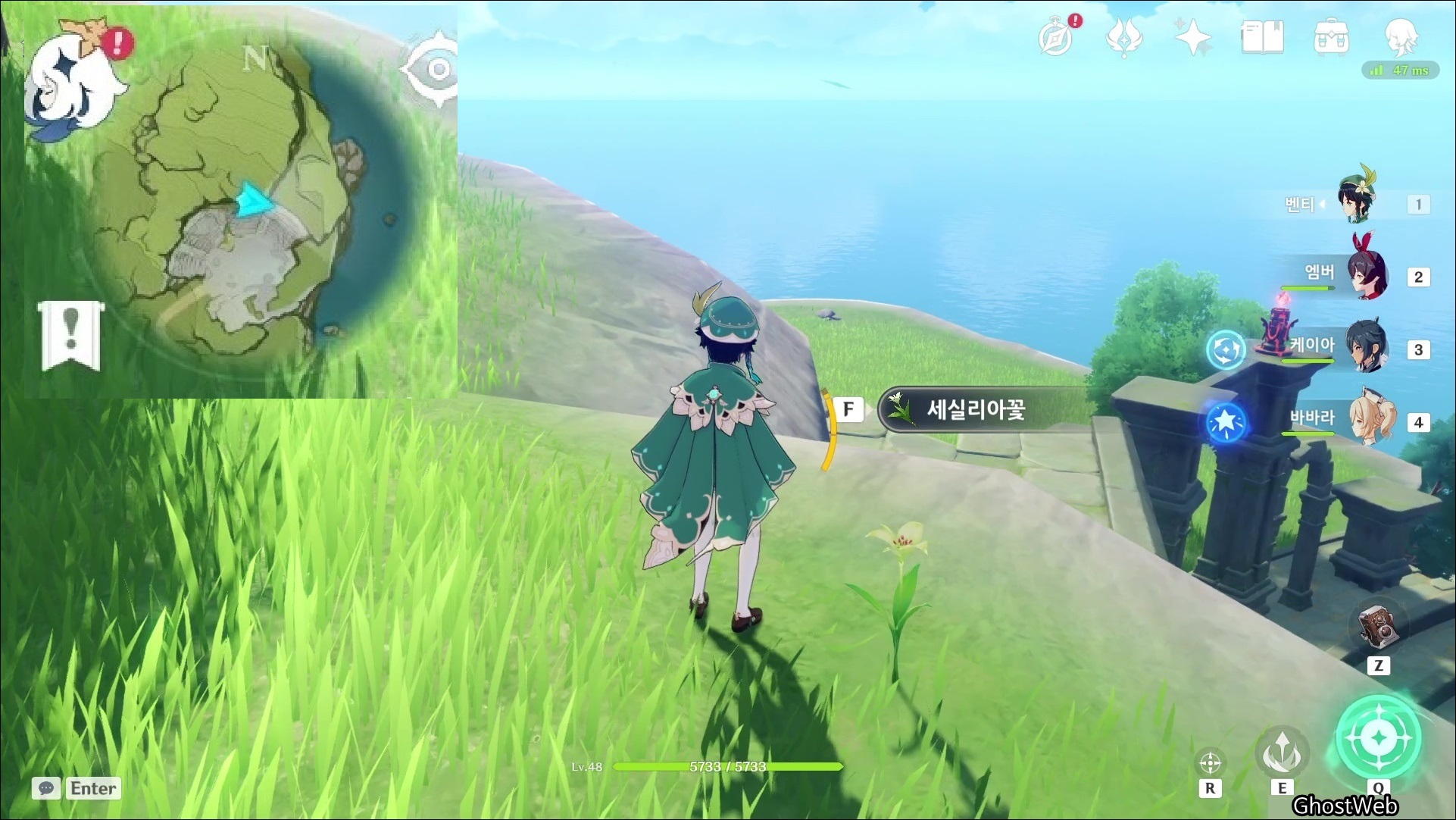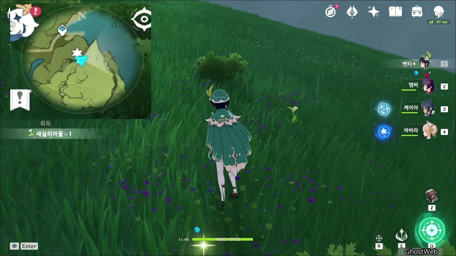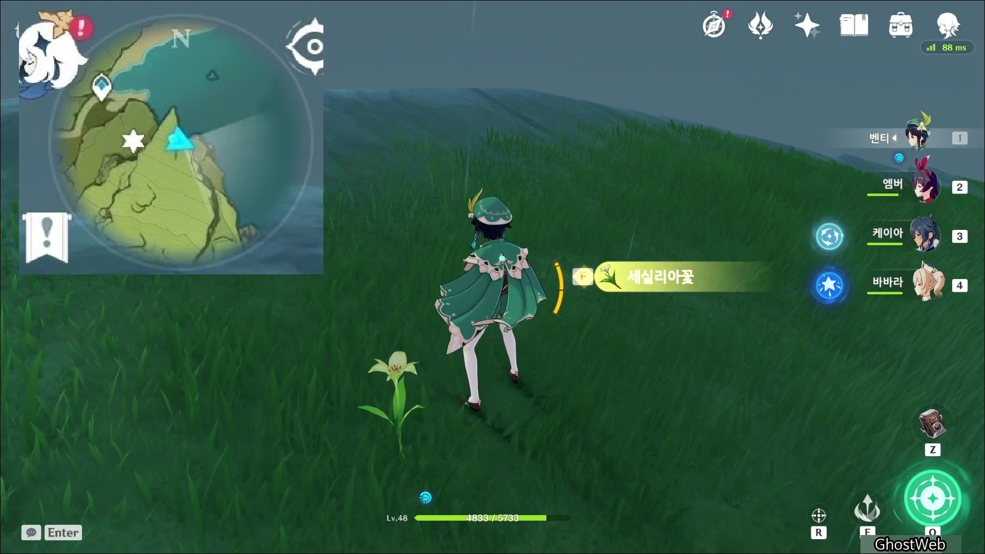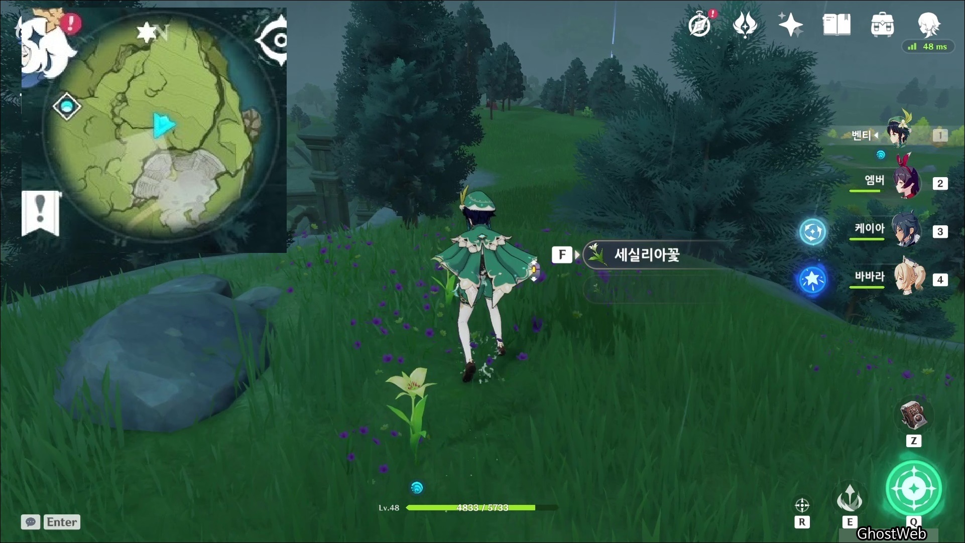 세실리아꽃은 몬드성 기준 2시 방향에 있는 <병을 따는 절벽>에 주로 분포해있어요.