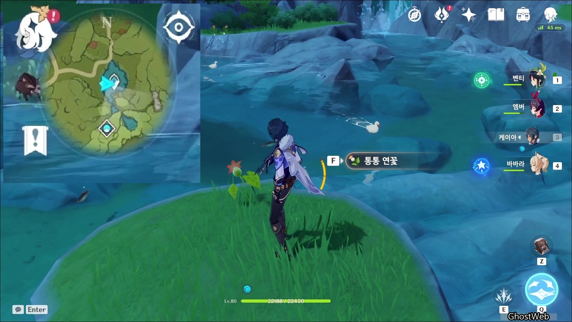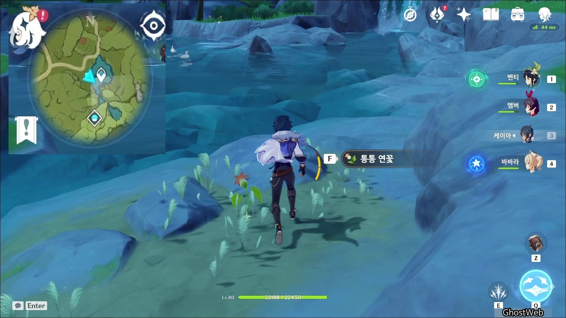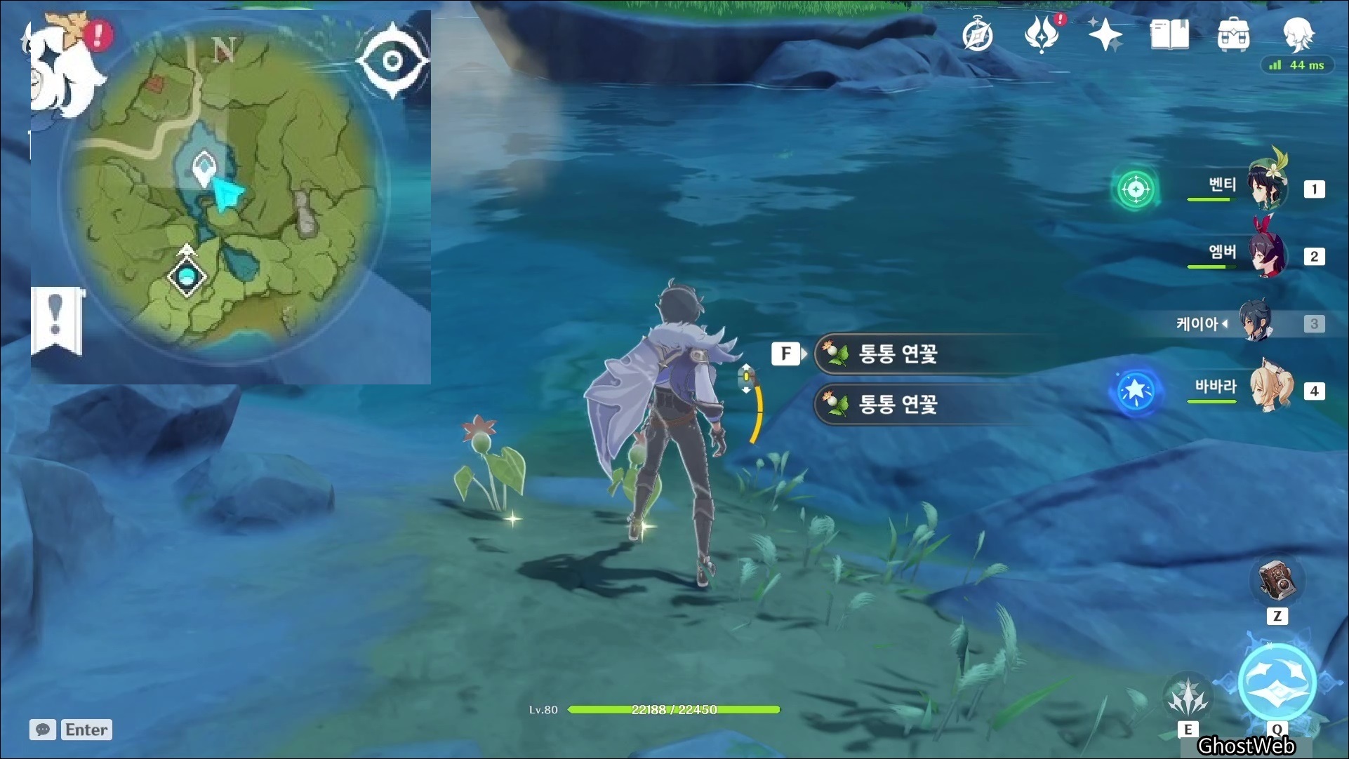 통통 연꽃은 몬드성 기준 6시 방향에 있는 <샘물 마을 위에 있는 호수>에 많이 분포해 있어요.