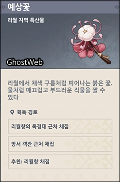 예상꽃은 <망서 객잔 근처>, <리월항의 옥경대 근처>에서 채집할 수 있어요.
