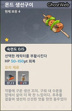 이번에는 요리 재료인 생선 살코기를 얻을 수 있는 위치와 요리에 대해서 알아보도록 할게요.