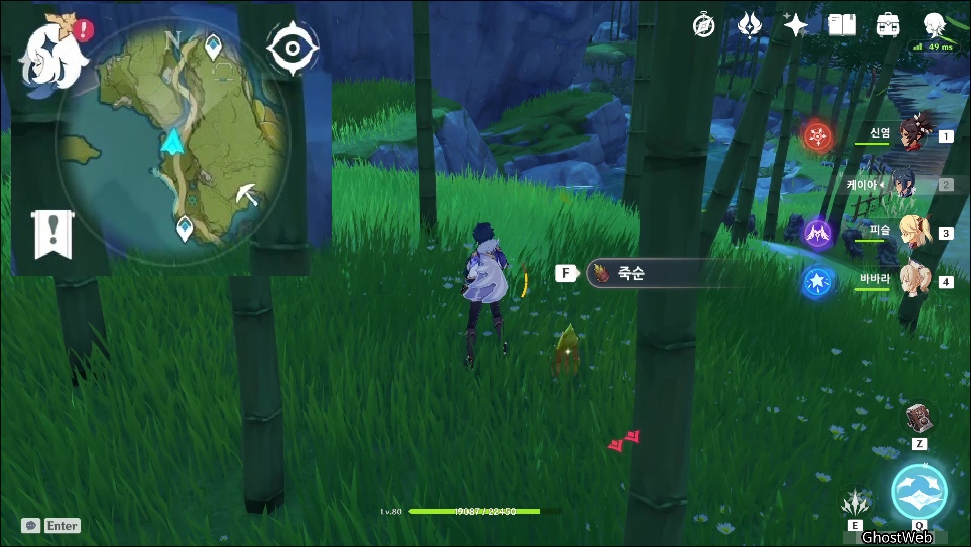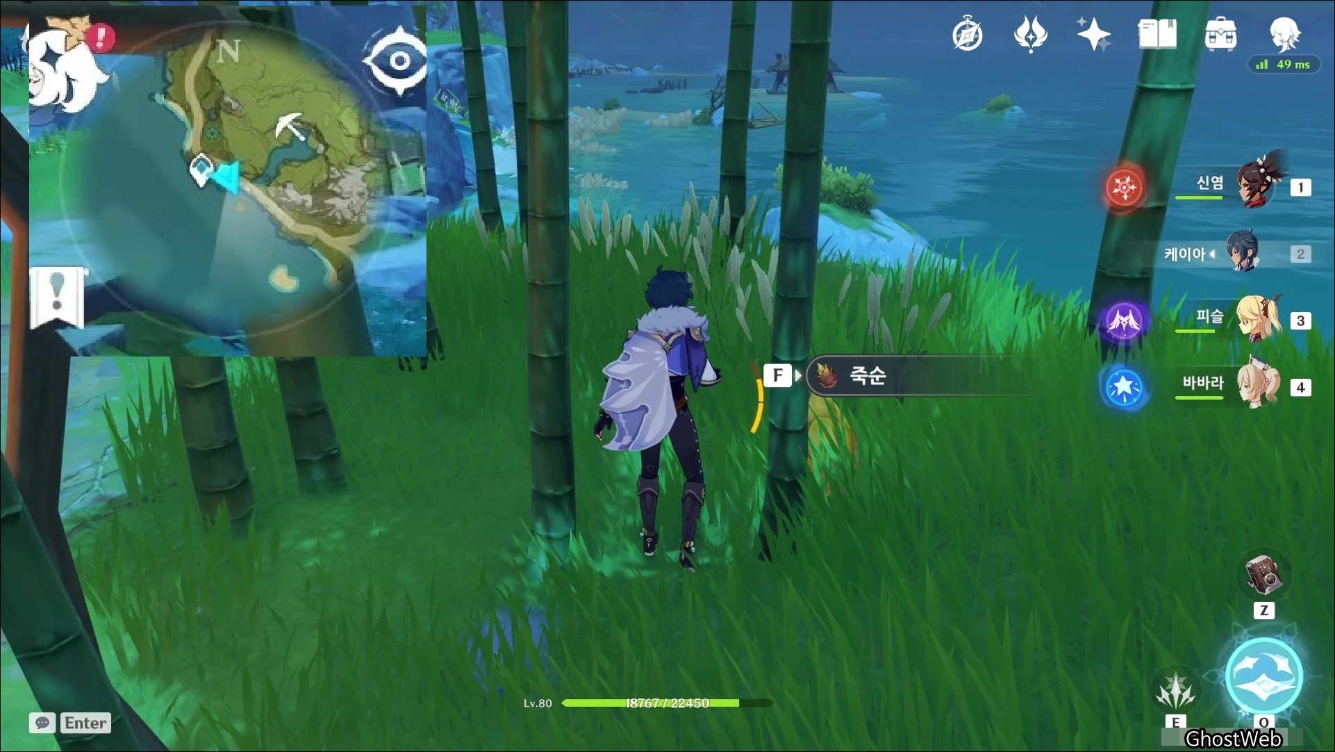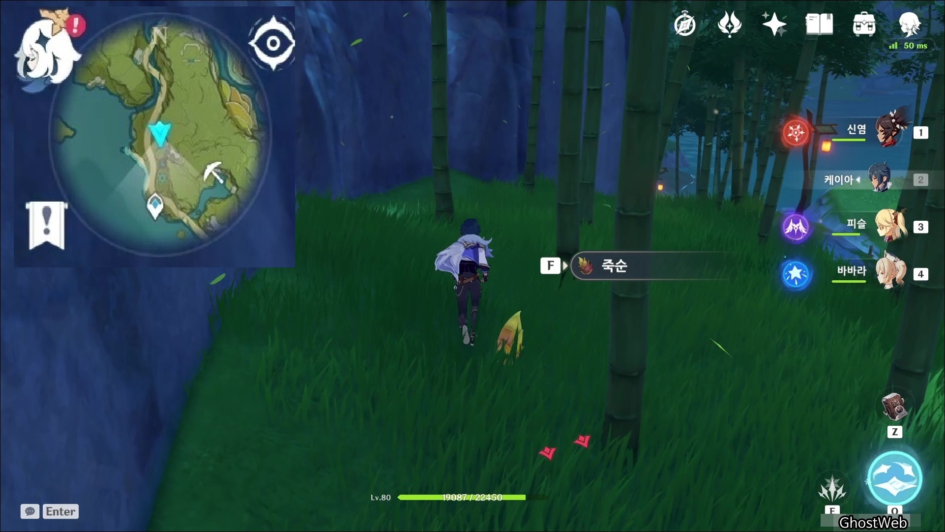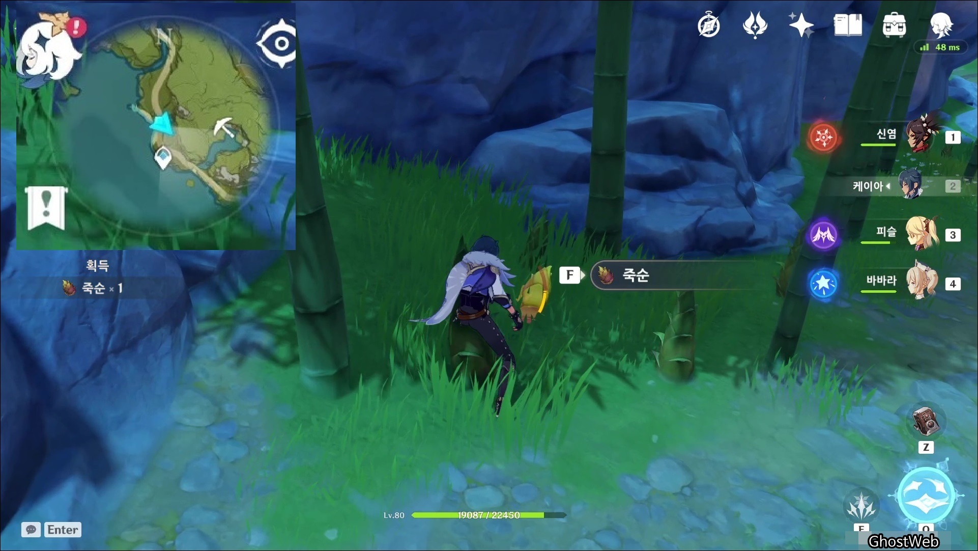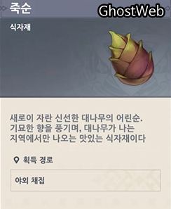 죽순은 <경책 산책>에서 7시 방향에 있는 대나무 숲에서 채집할 수 있어요.
