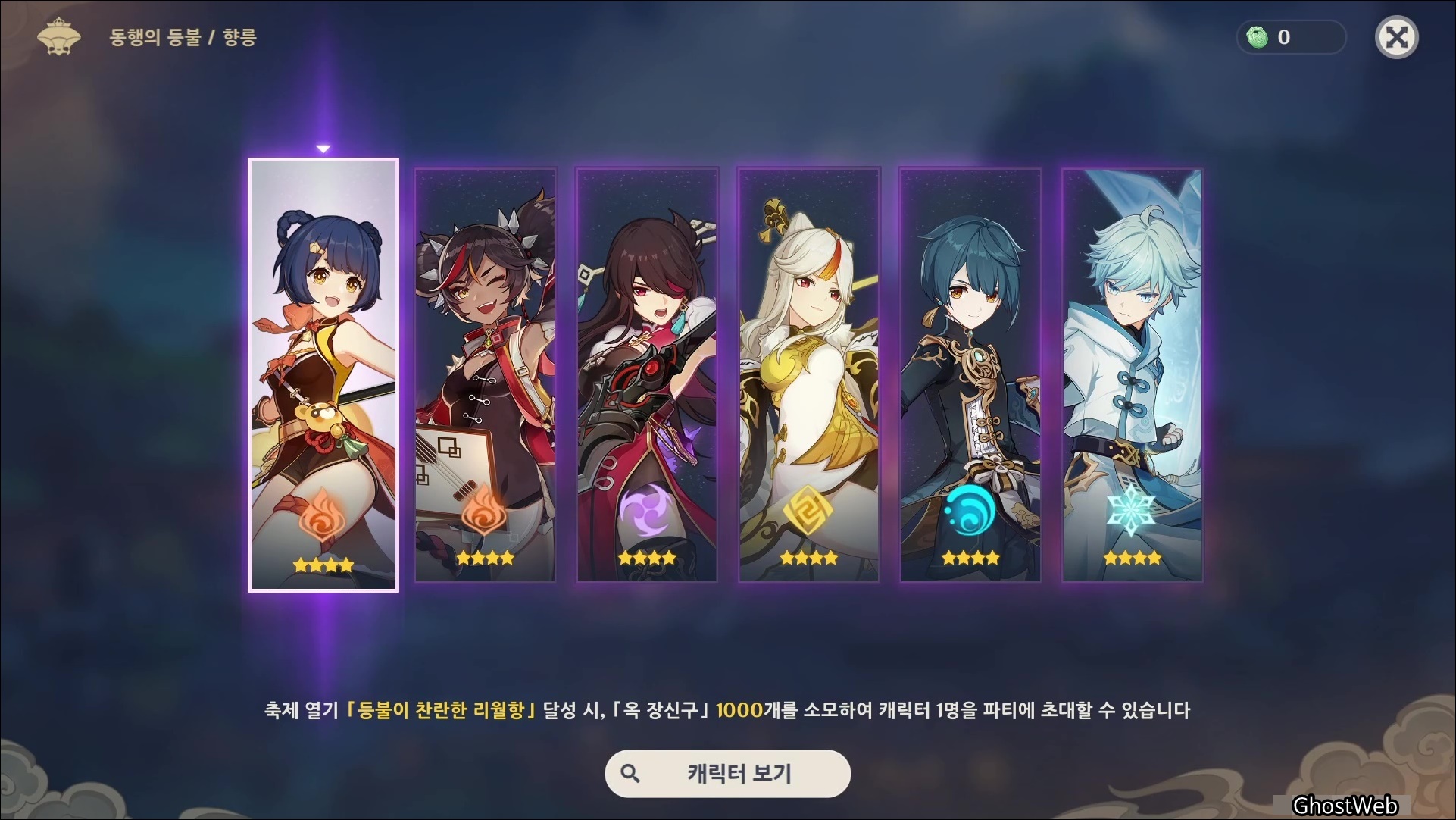 동행의 등불에서는 옥 장신구 1000개를 소모하여 4성 캐릭터로 교환이 가능한데 1번만 수령가능하다고 하니 본인에게 필요한 캐릭터를 선택하는 것을 추천드려요.