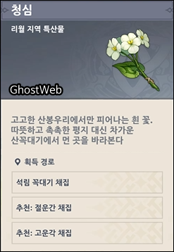 이번에는 리월 지역 특산물인 청심을 채집할 수 있는 위치를 알아보도록 할게요.