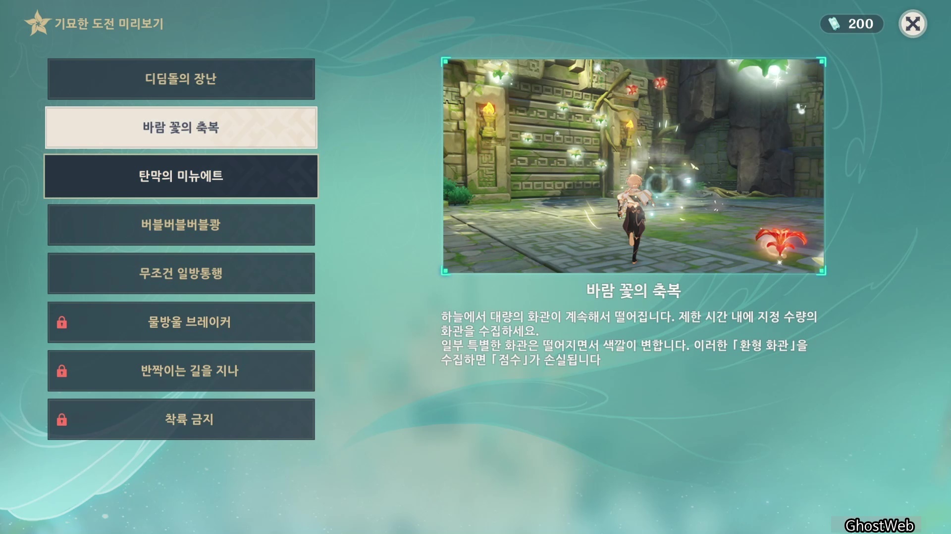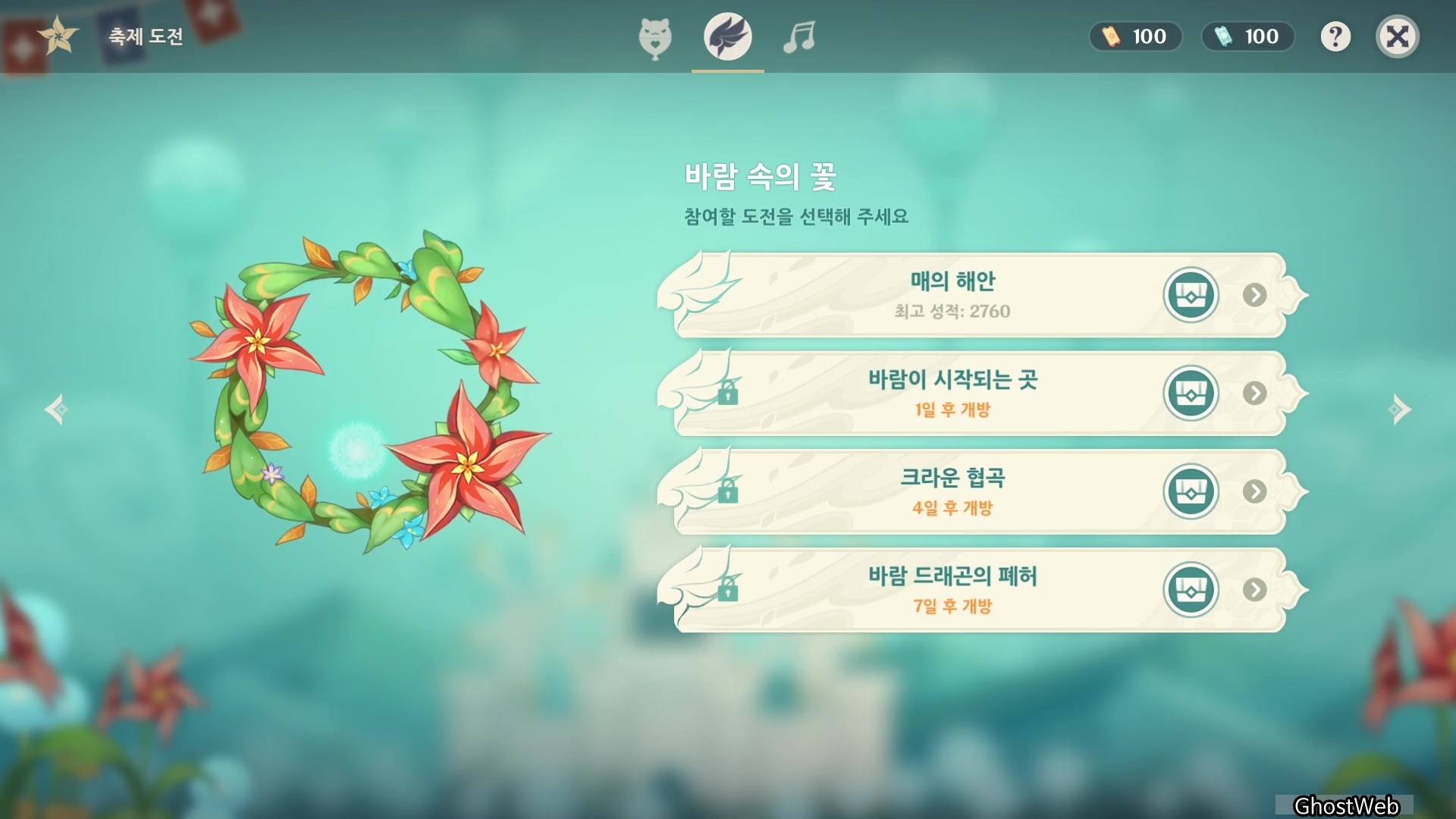 - 윈드블룸 축제(백발백중, 바람 속의 꽃, 바람의 노래, 기묘한 정원) 참여를 통해 얻은 티켓을 통해 이벤트 창에 있는 이벤트 상점에서 각종 아이템으로 교환할 수 있어요.