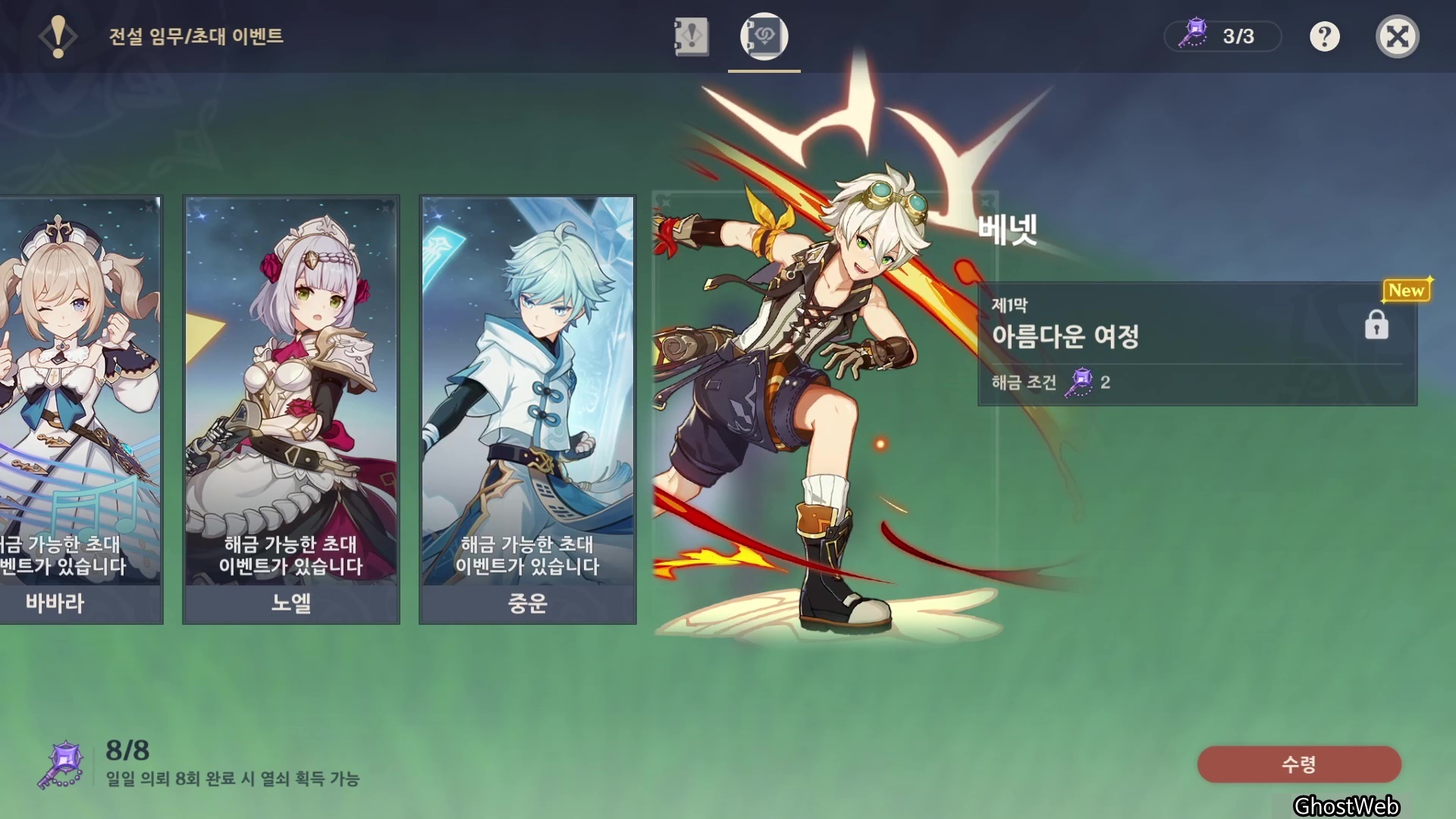 원신 1.4 업데이트를 맞아 새로 생긴 캐릭터 초대 이벤트 중 불 원소 캐릭터인 베넷 스토리별 엔딩을 살펴보도록 할게요.