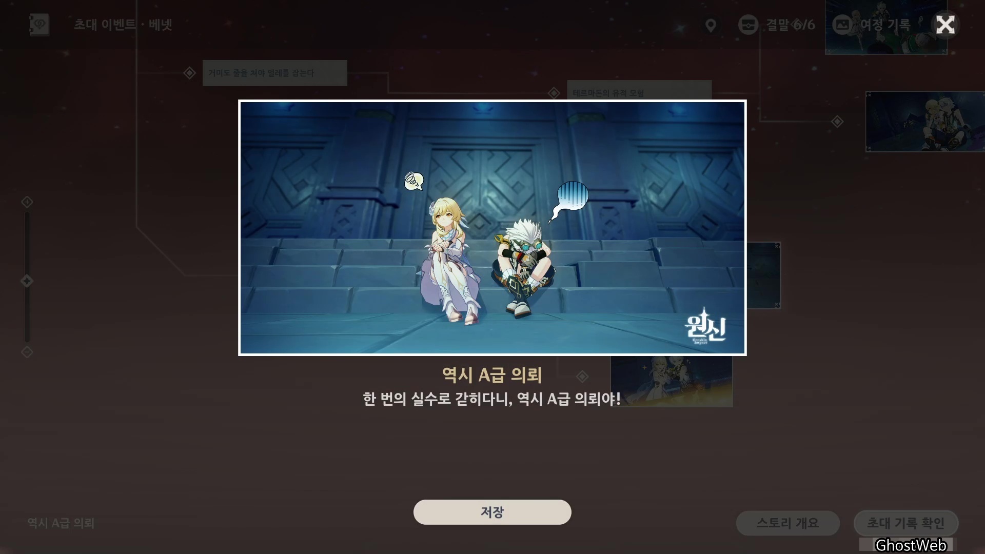 | [원신] 바바라 - 초대 이벤트 스토리 분기점 및 엔딩 (제1막 - 치유의 샘물) (0) | 2021.03.21 |