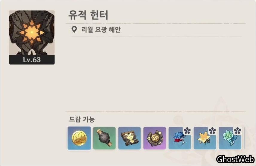 유적 헌터는 대부분 1 마리 씩 위치하고 있고 리월 지역 여러 곳에 분포해 있어요,