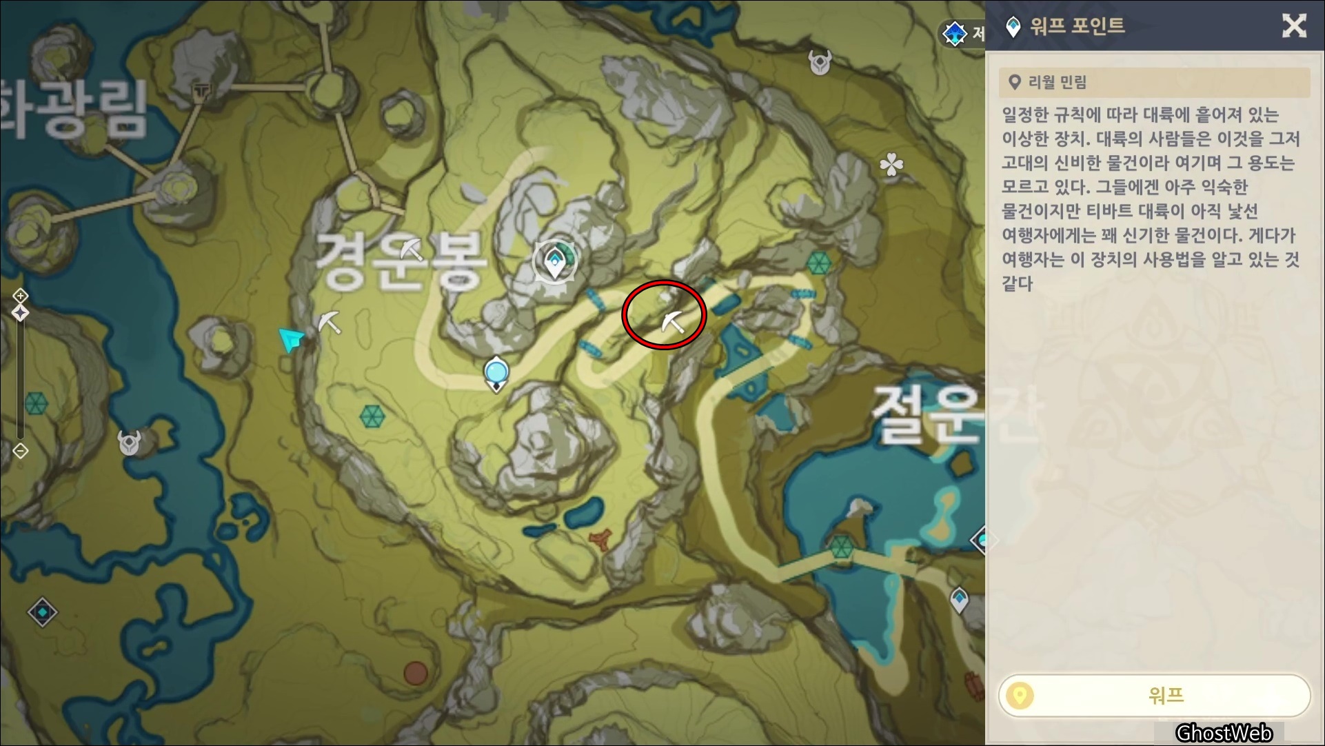 경춘봉 워프 포인트 기준으로 9시 방향과 3시 방향에 산악 지형에서 마법 수정석과 수정덩이가 있는 곳을 찾을 수 있어요.