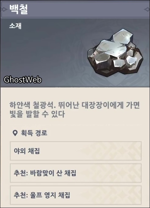 이번에는 무기 경험치 재료인 백철을 얻을 수 있는 위치를 정리해보도록 할게요.