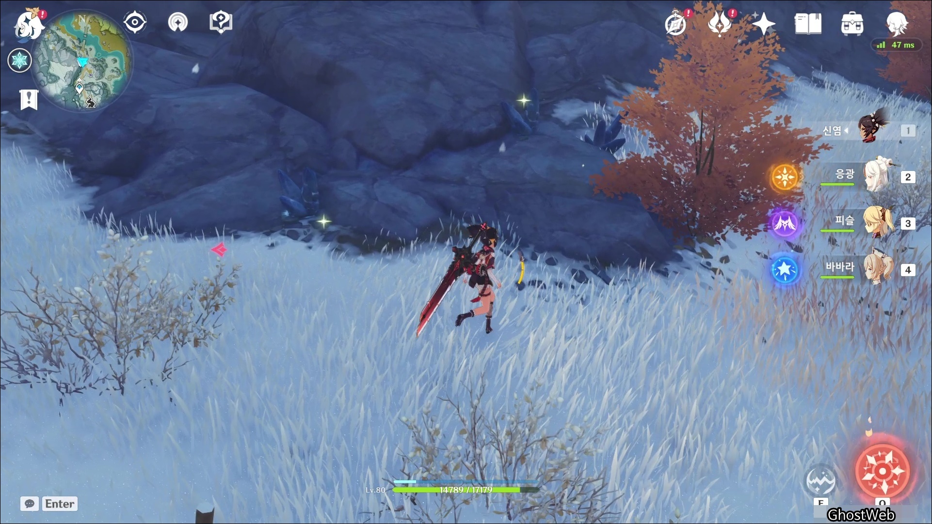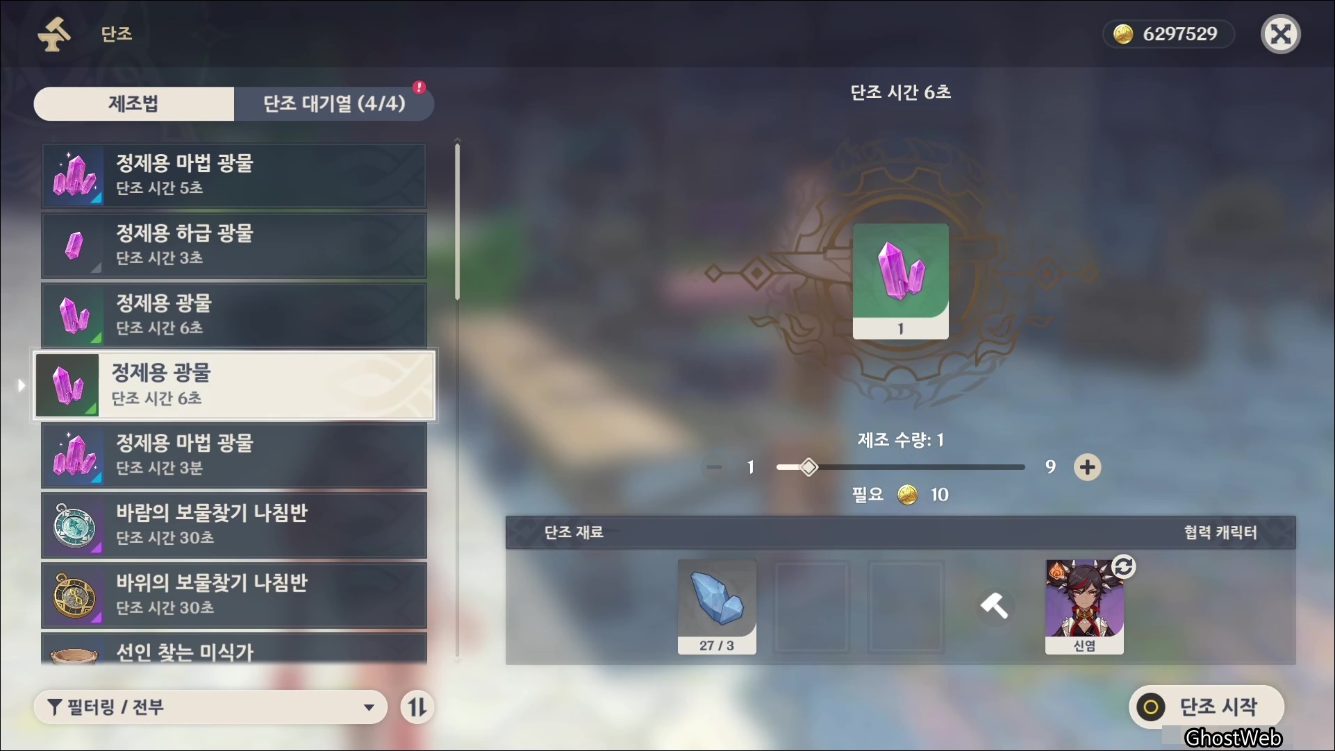 바위 속성 캐릭터(종려, 응광)가 있으면 광물을 속 쉽게 깰 수 있으며, 만약에 바위 속성 캐릭터가 없으신 분은 양손검을 사용하는 캐릭터로 광물을 깨면 돼요. (※ 전기 수정은 불 원소 캐릭터/공격으로 파괴 가능)