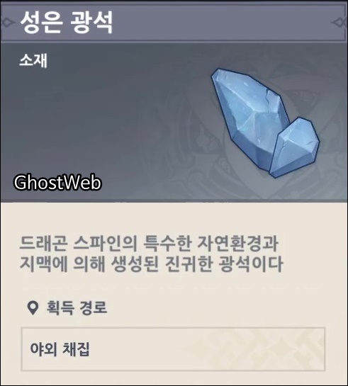 성은 광석은 드래곤 스파인 지역(설산)에서 얻을 수 있어요.