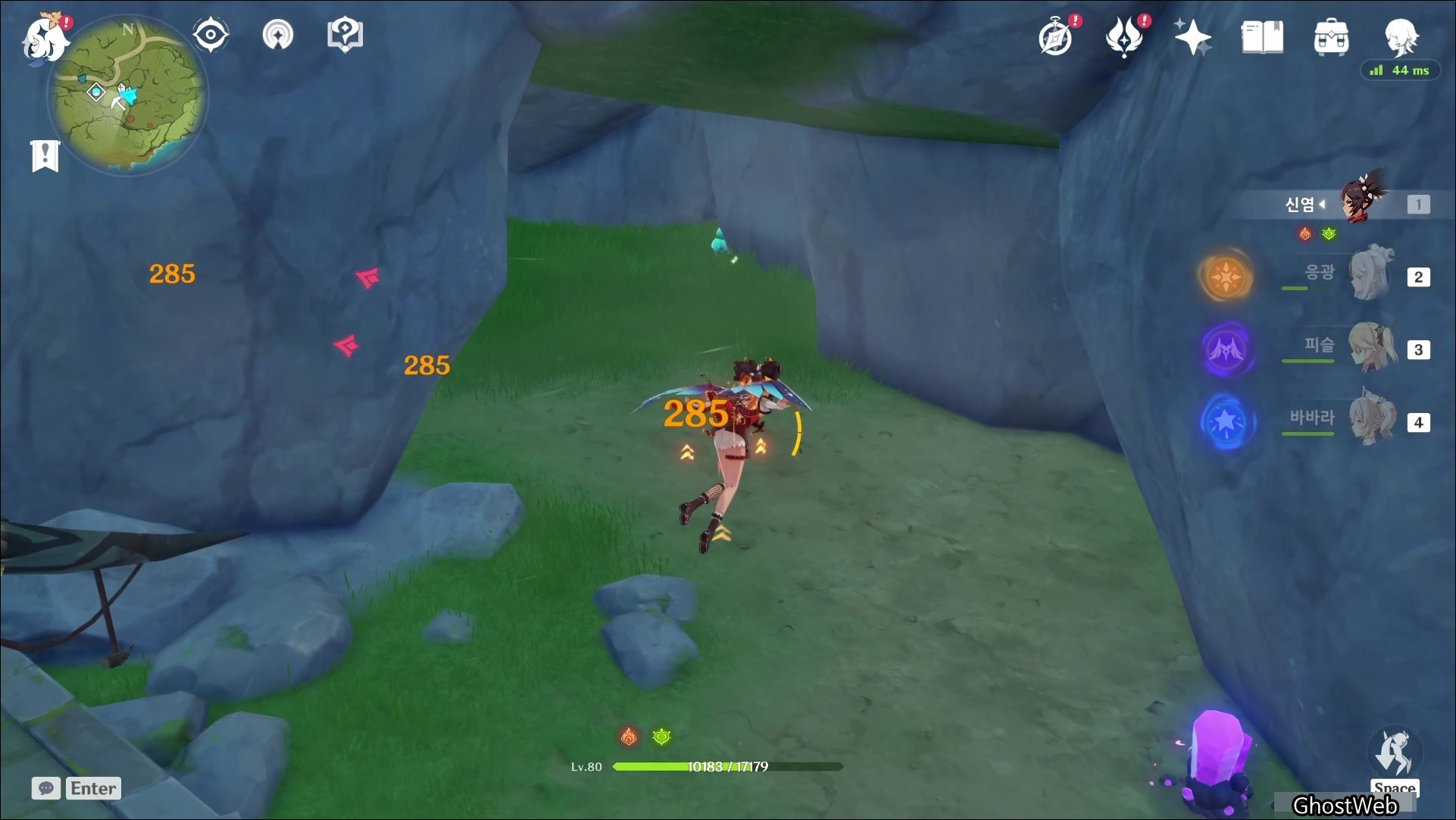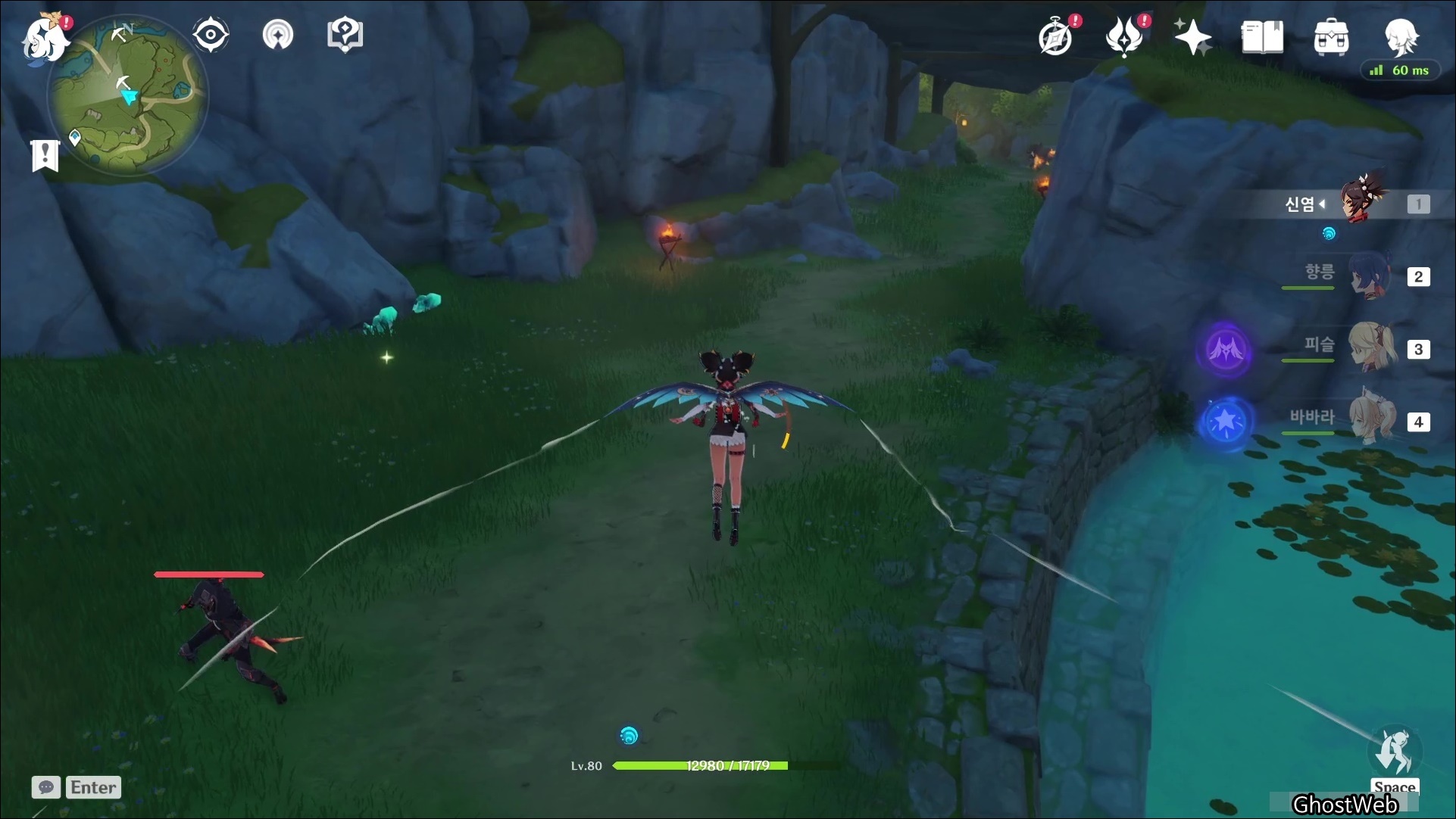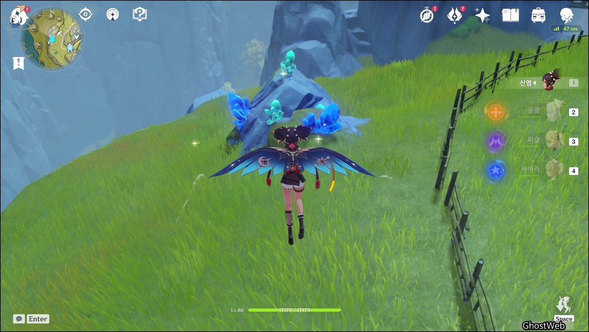 성법 관문 워프 포인트에서 6~7시 방향으로 비행하다 보면 강가 주변에 돌에서 수정덩이(3)을 얻을 수 있어요.