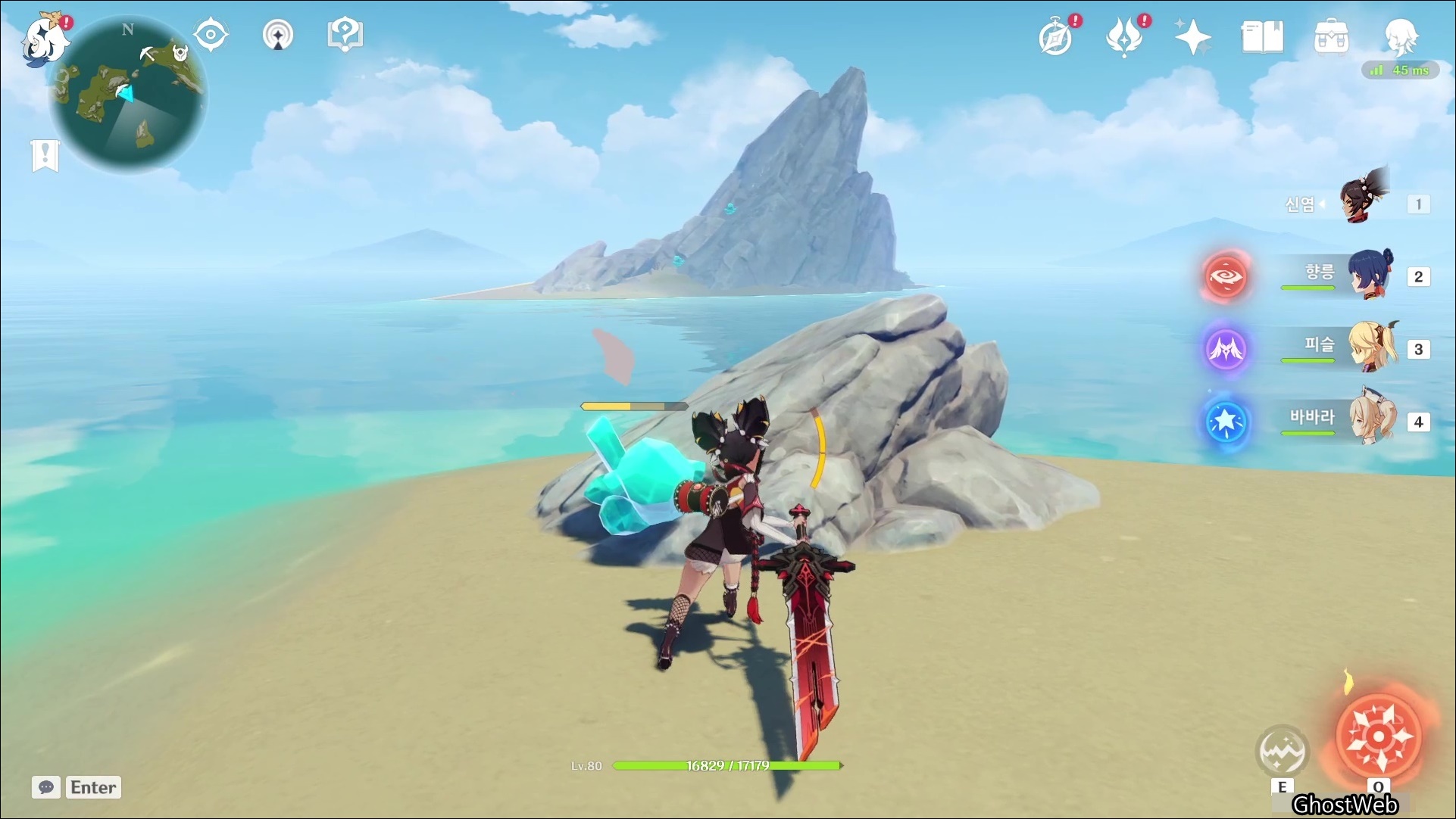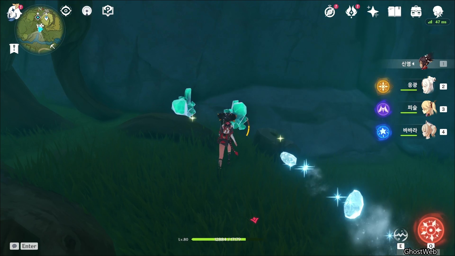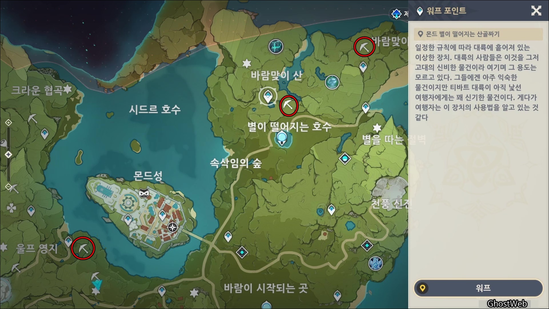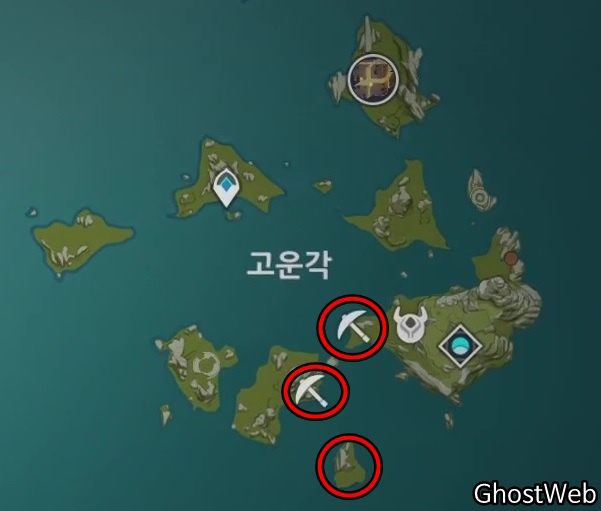고운각에 있는 비경으로 워프하여 7~9시 방향의 바위, 바위 섬을 탐색하면 수정덩이를 발견할 수 있어요.