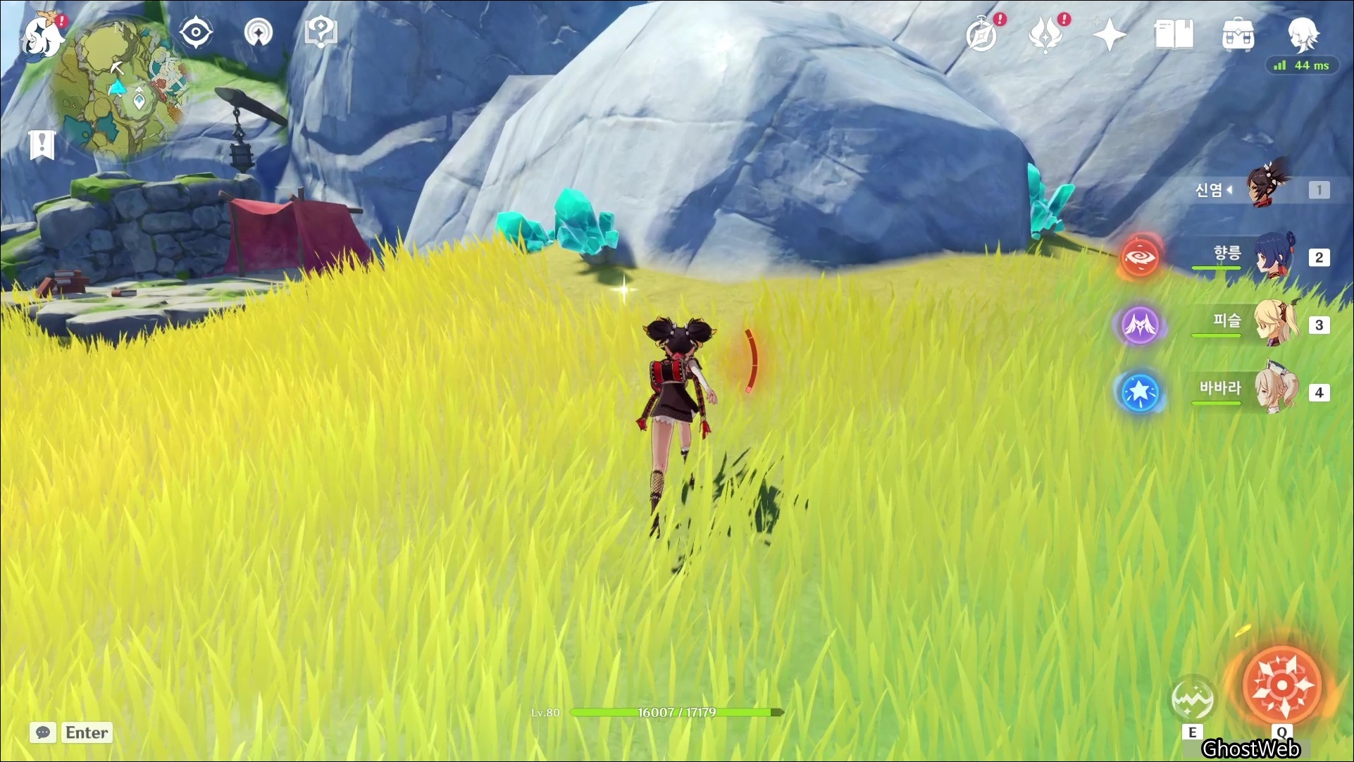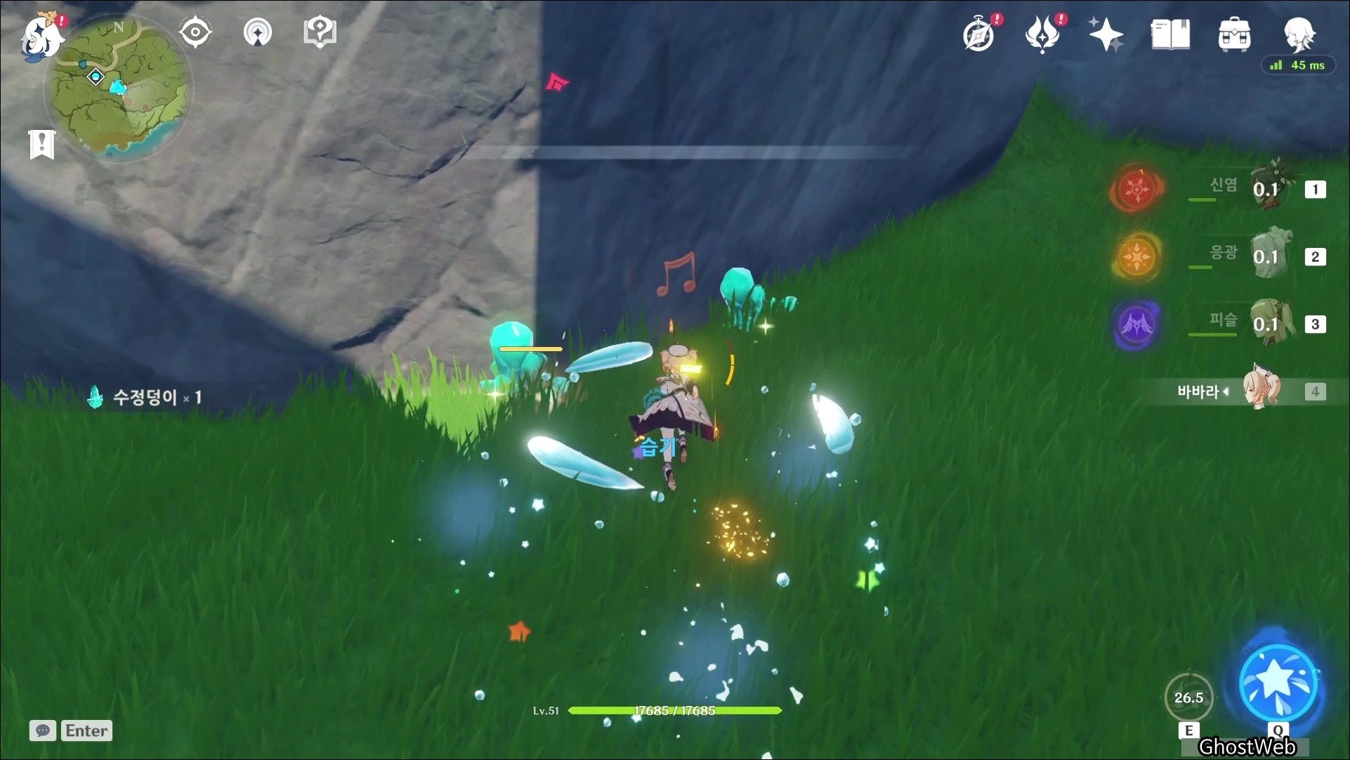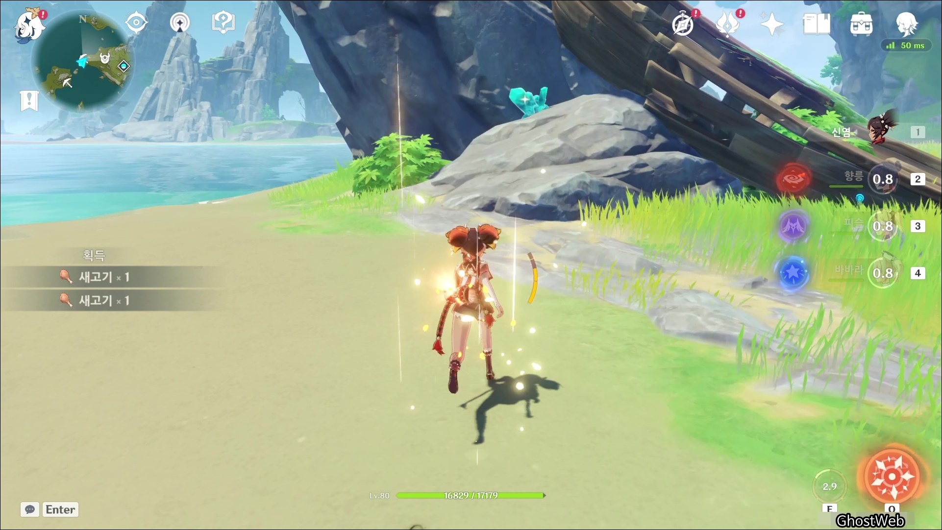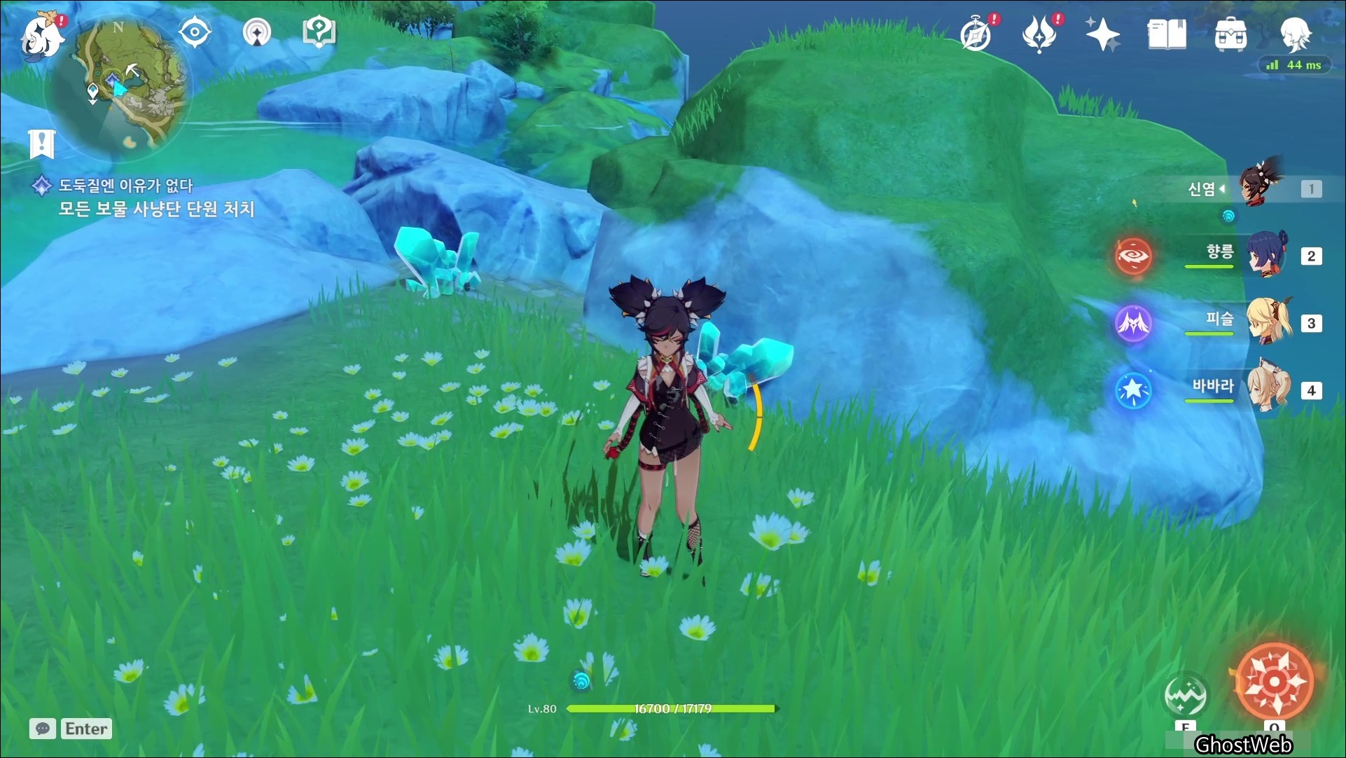 고운각에 있는 비경으로 워프하여 7~9시 방향의 바위, 바위 섬을 탐색하면 수정덩이를 발견할 수 있어요.