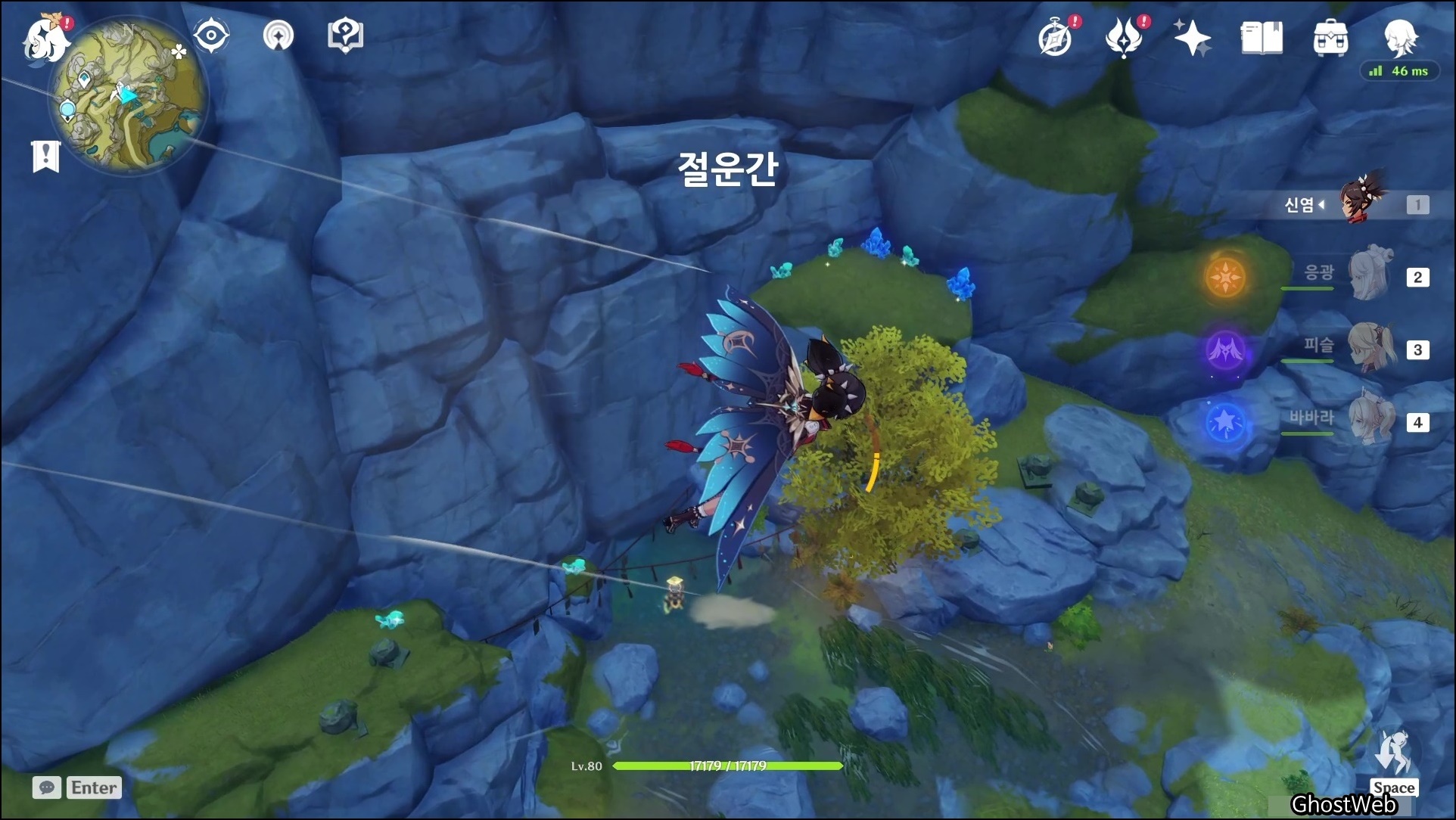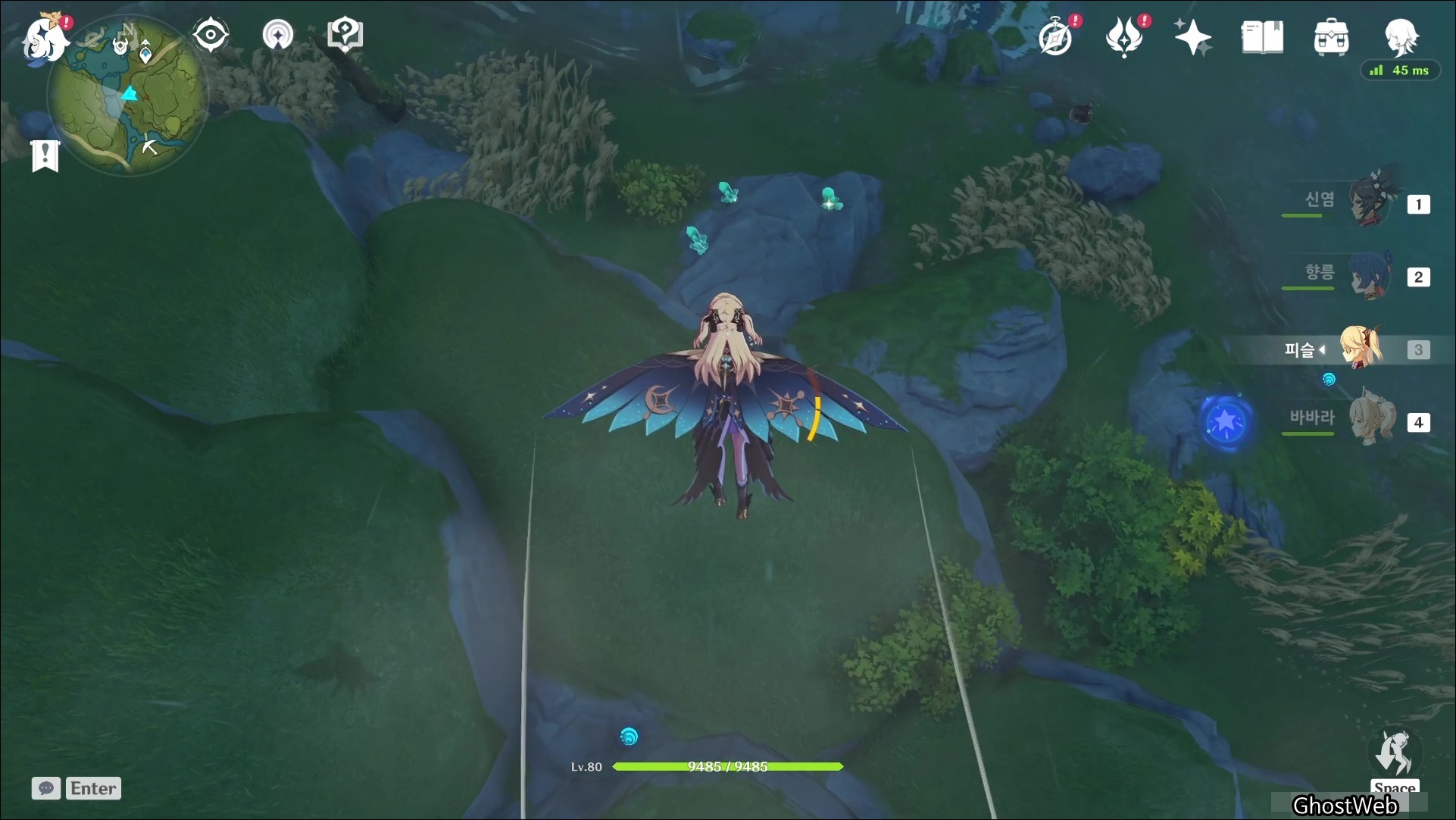 경운봉 워프 포인트에서 3시 방향으로 비행하다 보면 암벽 근처에 수정덩이, 마법 수정석 조각을 얻을 수 있어요.