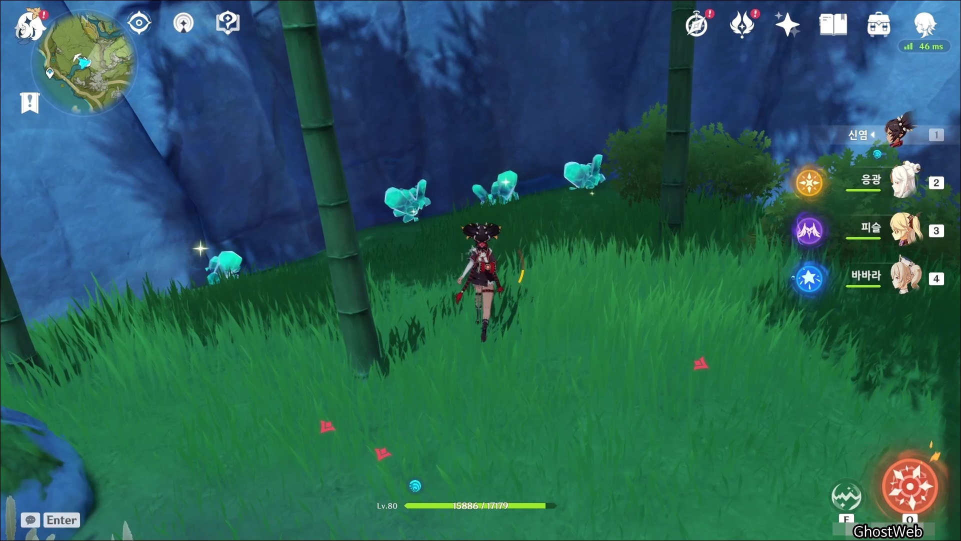 경책 산장 아래에 있는 워프 포인트(대나무 지역)에서 1~3시 방향의 바위 언덕을 올라가면 대나무 숲 한편에 있는 수정덩이를 발견할 수 있어요.