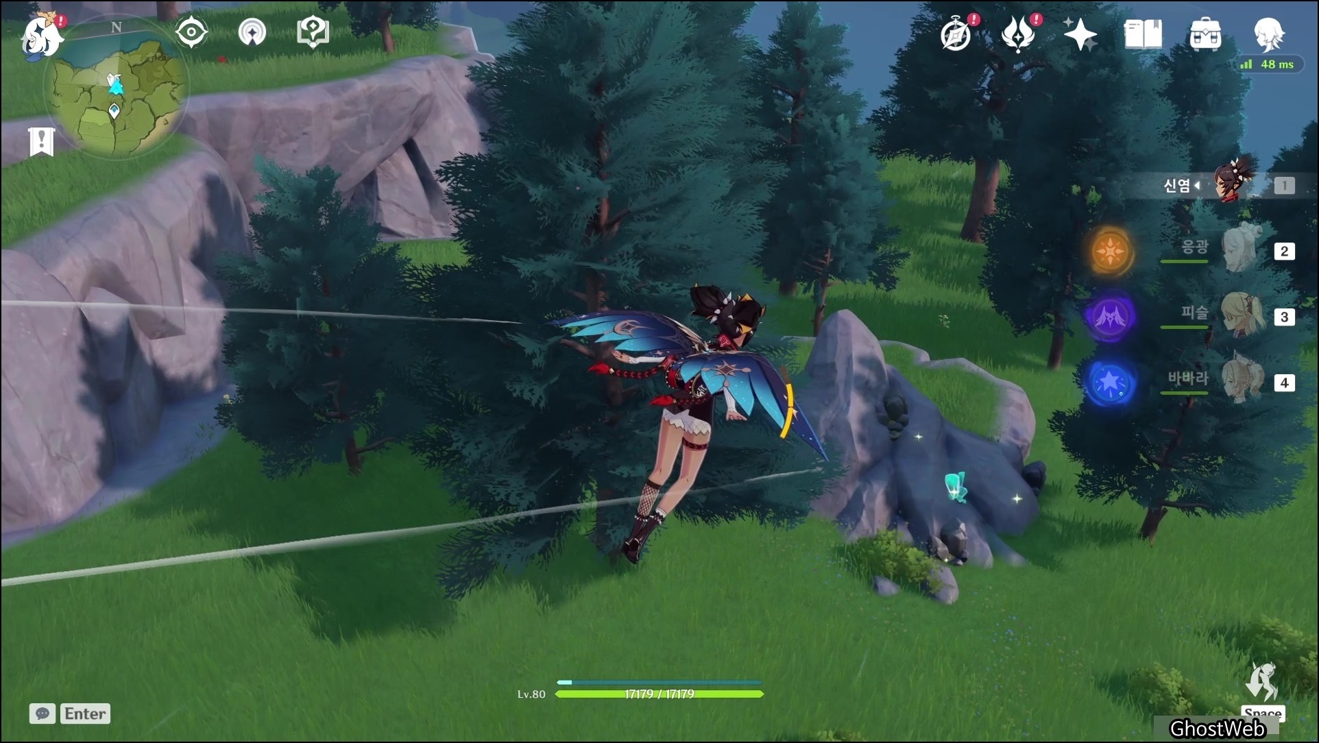 천형산 워프 포인트에서 11~12시 방향으로 비행하다 보면 바위 산 주변에서 수정덩이를 얻을 수 있어요.