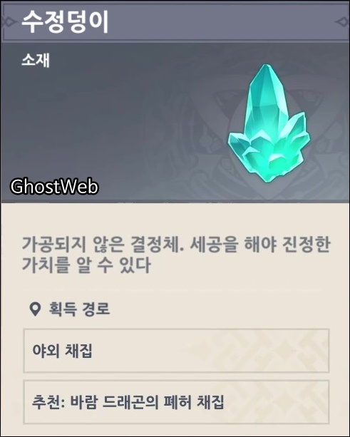 이번에는 무기 경험치 재료인 수정덩이를 얻을 수 있는 위치를 정리해보도록 할게요.