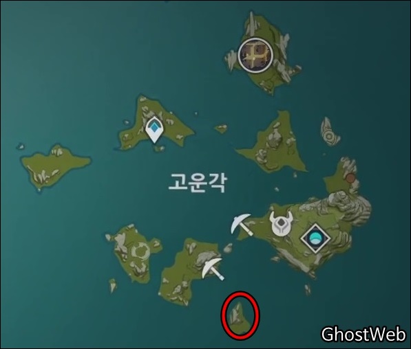 고운각에 있는 비경으로 워프하여 7시 방향에 있는 섬에서 야박석을 얻을 수 있어요.