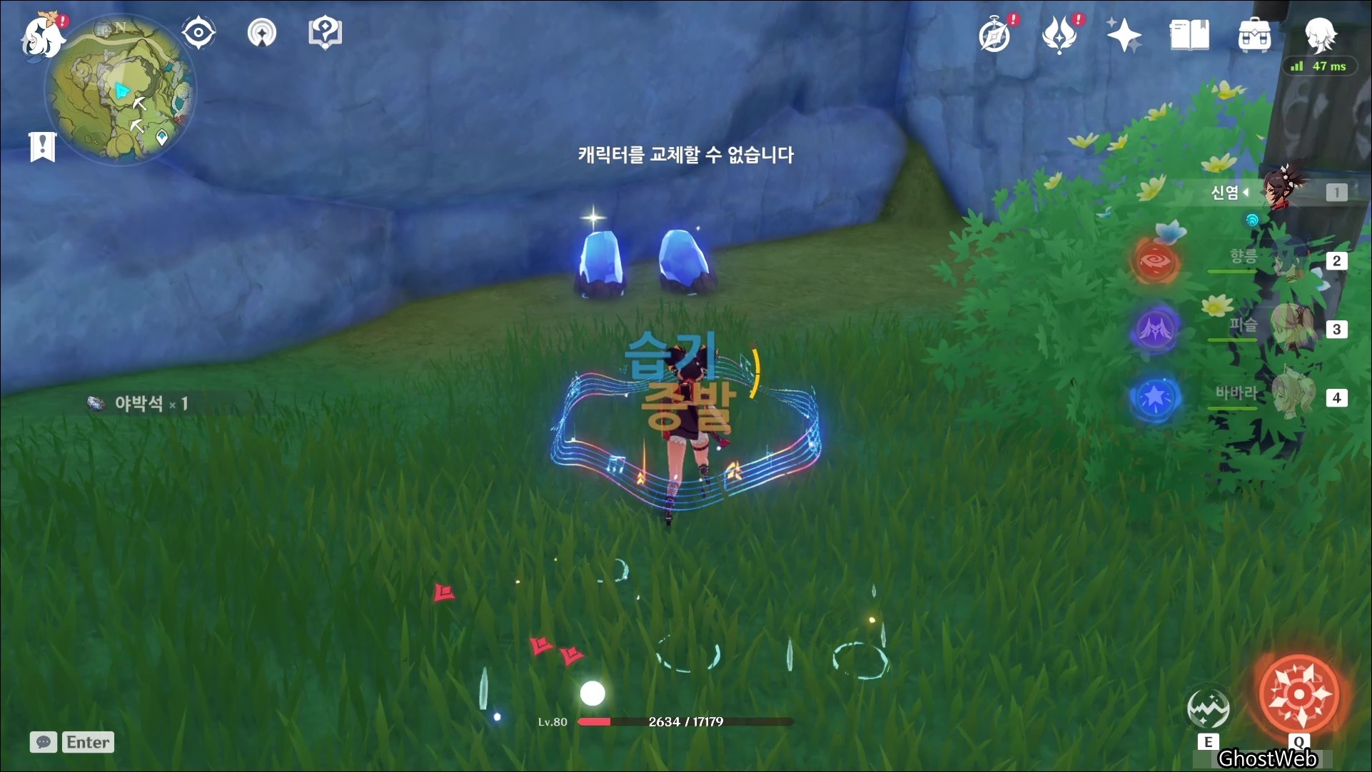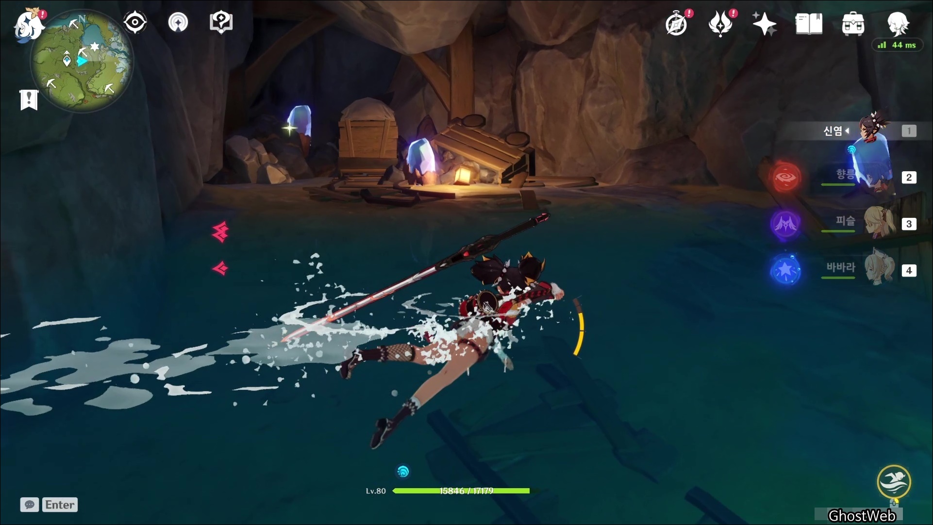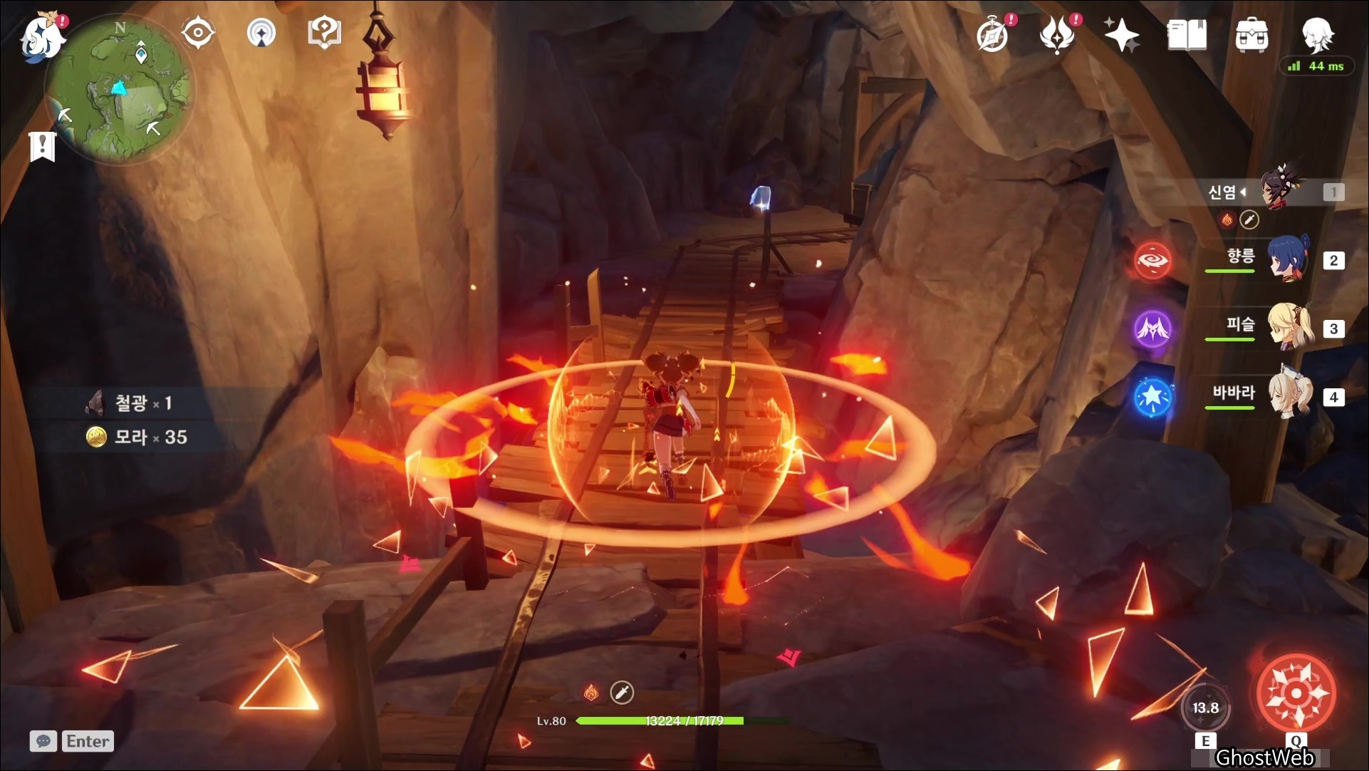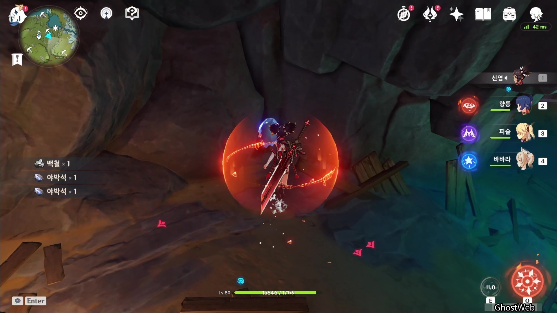바위 속성 캐릭터(종려, 응광)가 있으면 광물을 속 쉽게 깰 수 있으며, 만약에 바위 속성 캐릭터가 없으신 분은 양손검을 사용하는 캐릭터로 광물을 깨면 돼요. (※ 전기 수정은 불 원소 캐릭터/공격으로 파괴 가능)