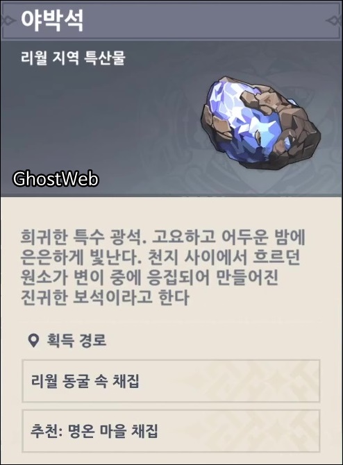이번에는 리월 지역 특산물인 야박석을 얻을 수 있는 위치를 정리해보도록 할게요.