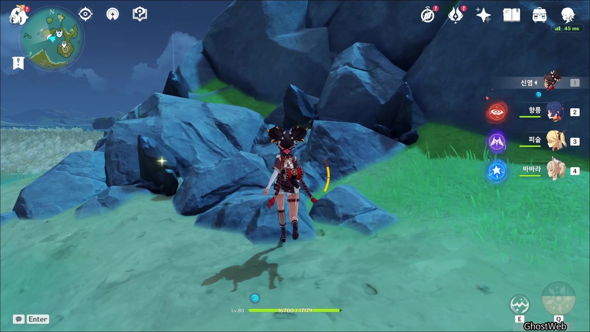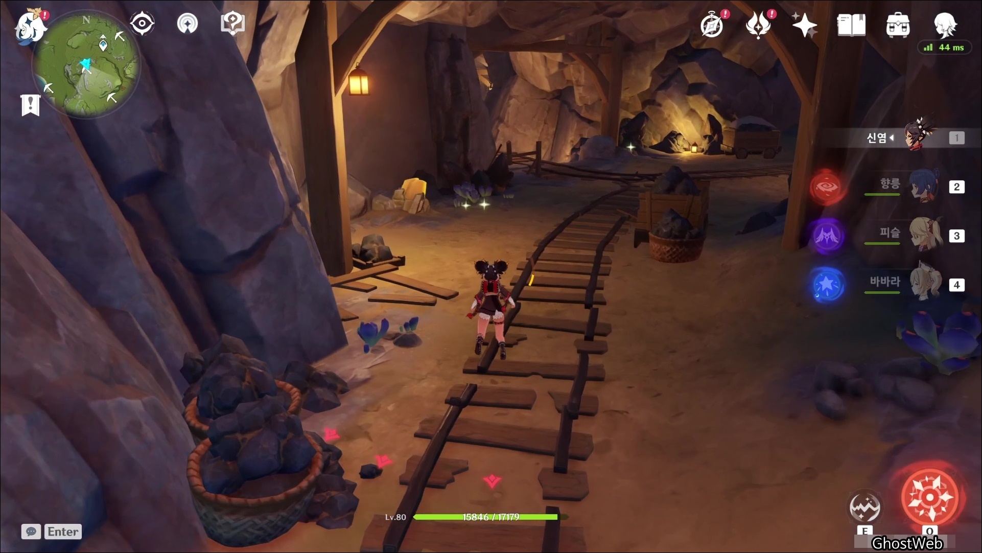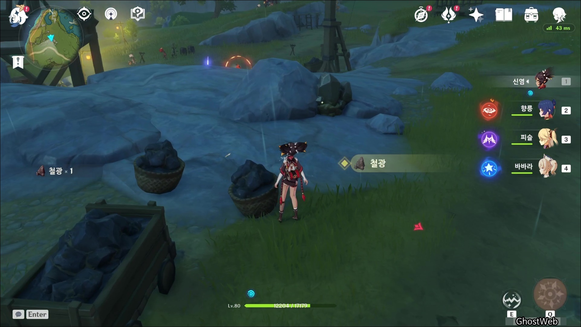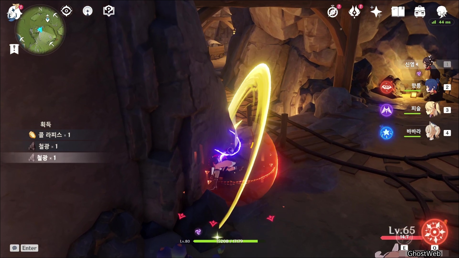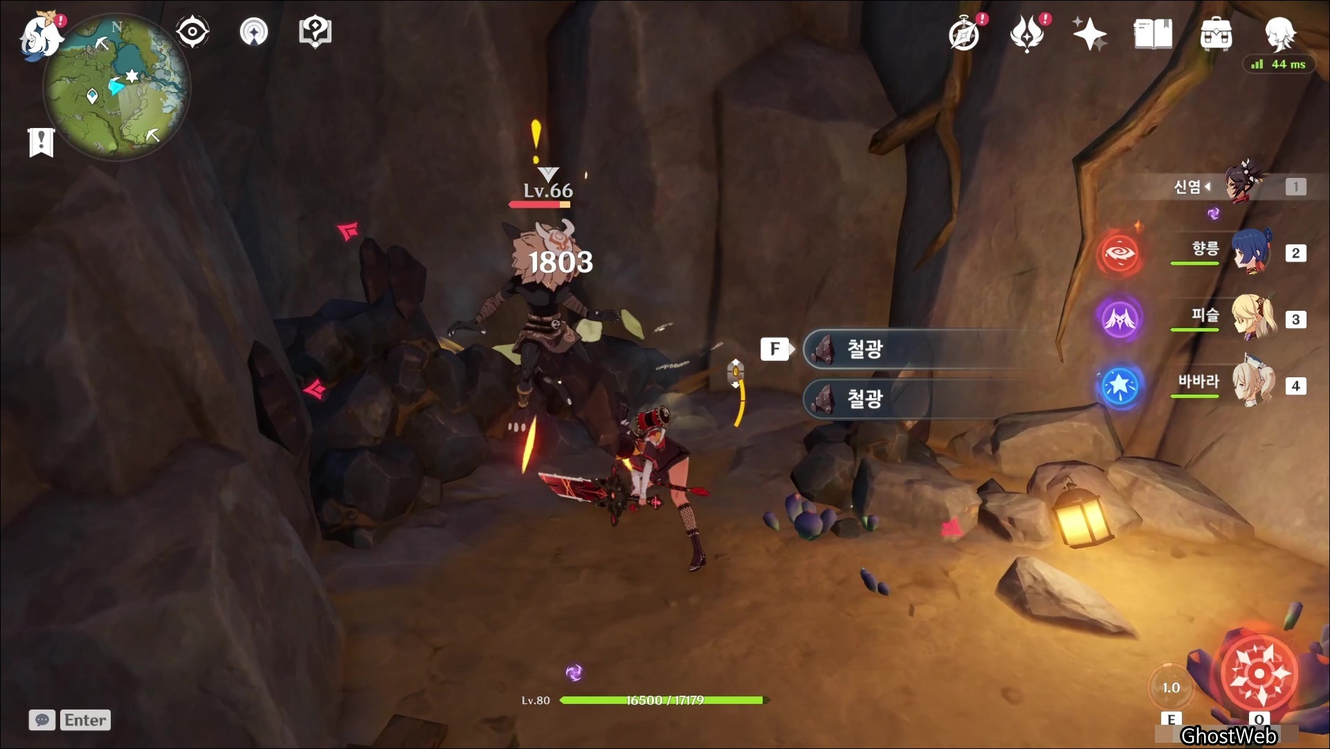 바위 속성 캐릭터(종려, 응광)가 있으면 광물을 속 쉽게 깰 수 있으며, 만약에 바위 속성 캐릭터가 없으신 분은 양손검을 사용하는 캐릭터로 광물을 깨면 돼요. (※ 전기 수정은 불 원소 캐릭터/공격으로 파괴 가능)