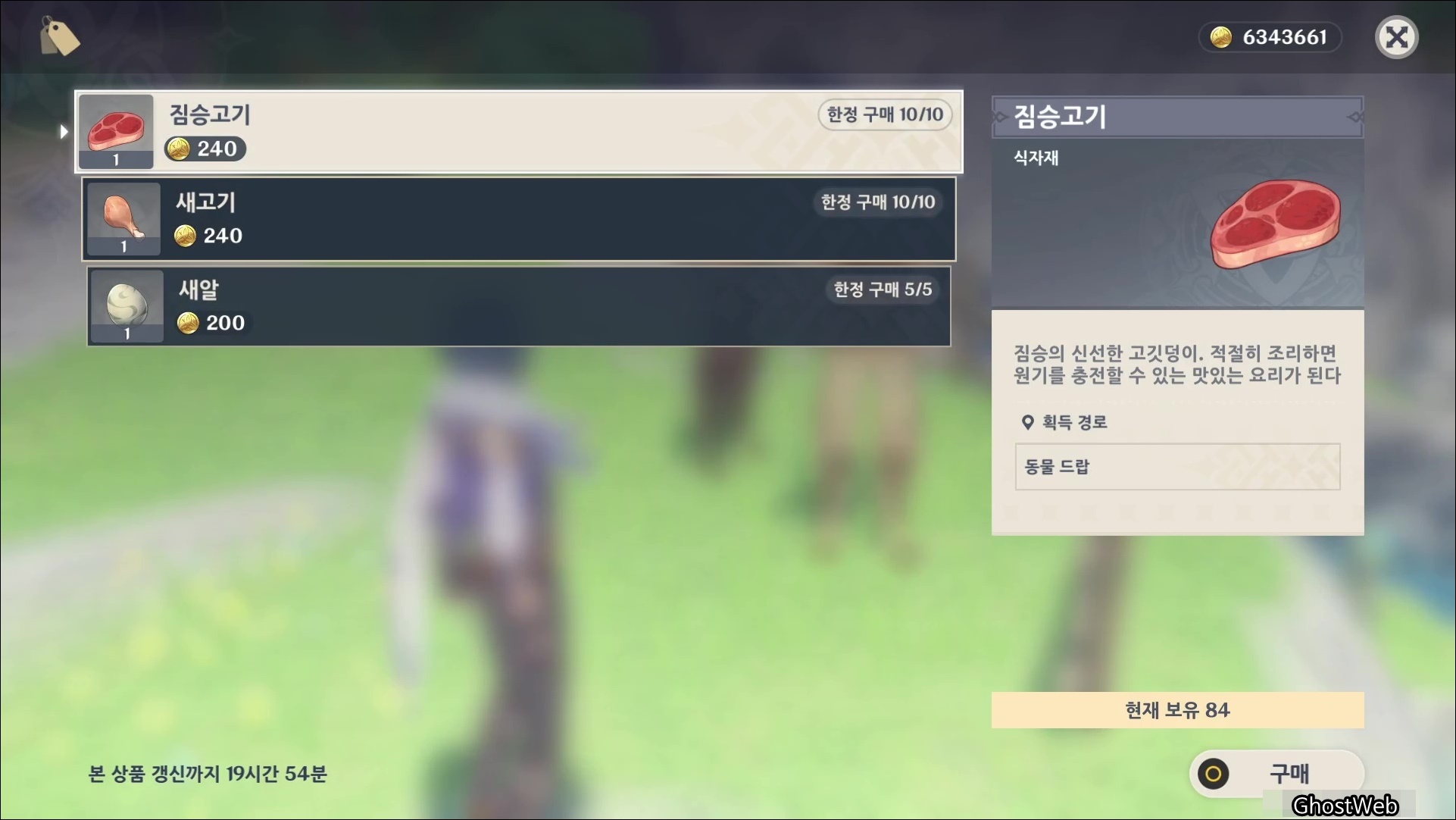 이번에는 짐승고기를 구매 및 얻을 수 있는 위치를 정리해 보도록 할게요.