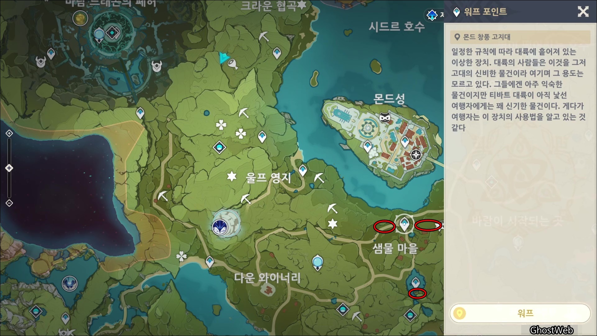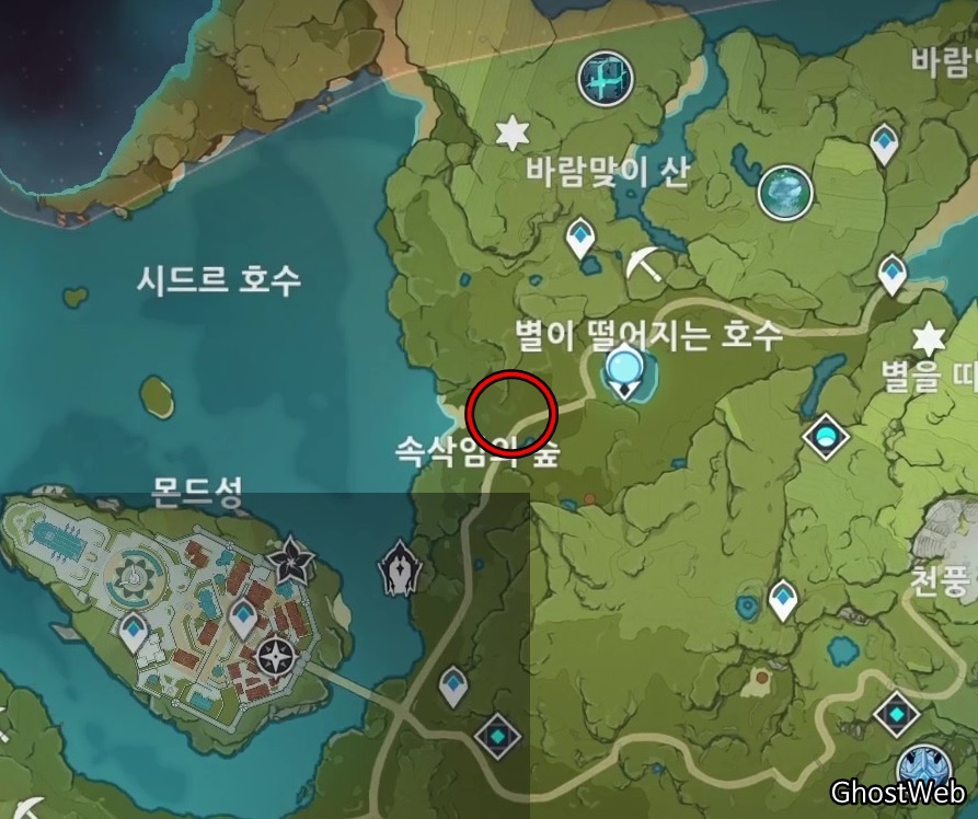 별이 떨어지는 호수 워프 포인트에서 몬드성 방향인 시드르 호수로 가다보면 일몰 나무 근처에서 짐승 고기를 얻을 수 있어요.
