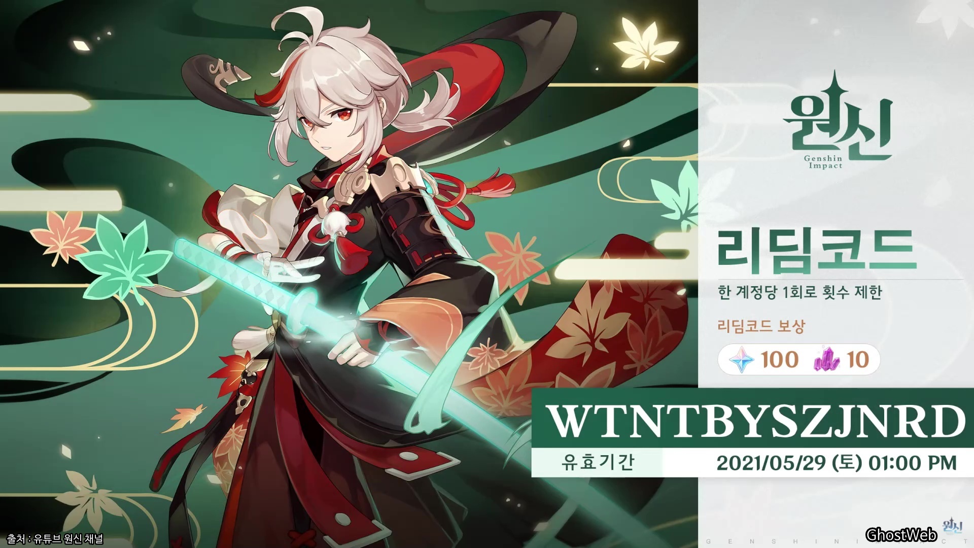 - 원신 홈페이지에서 코드를 입력하여 보상 획득 (한 계정당 1회 사용 가능)