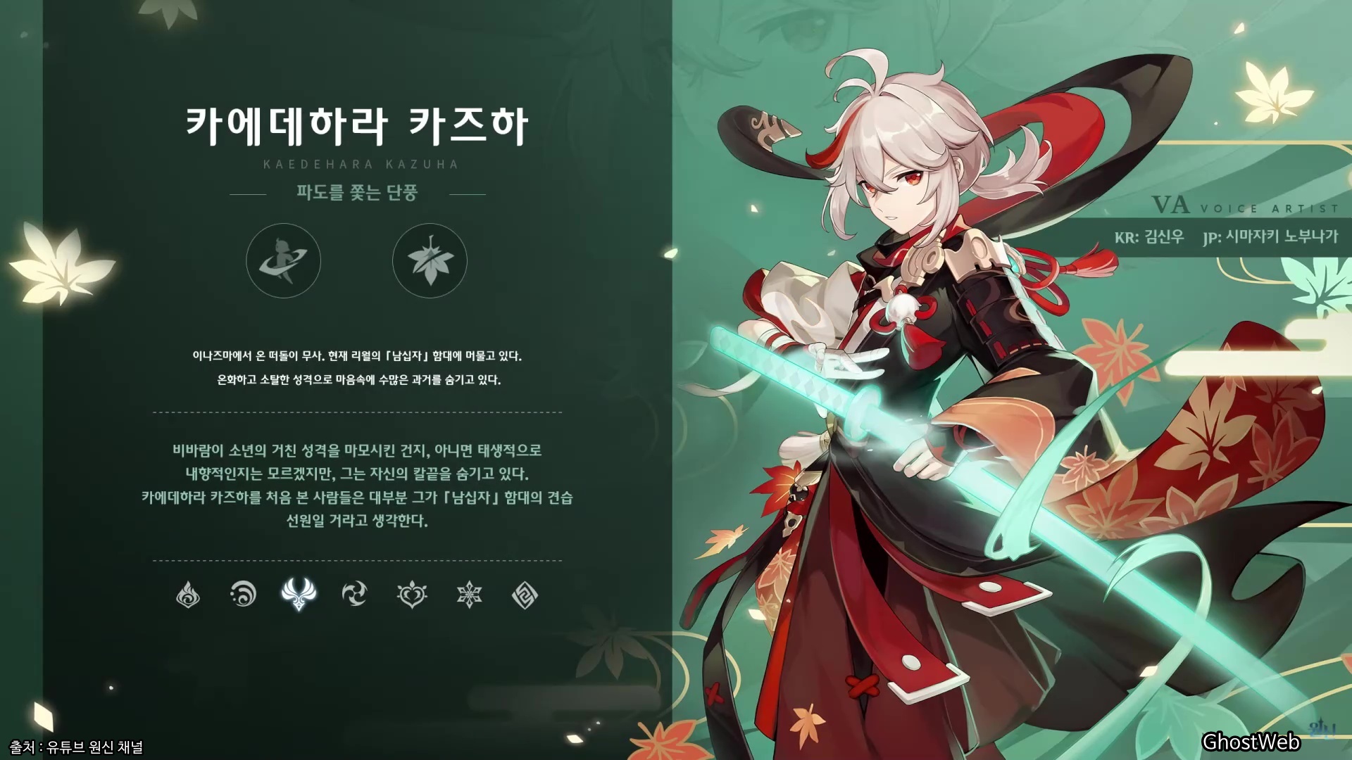 - 카에데하라 카즈하 (바람 원소 5성 캐릭터, 바람에 지는 낙엽)