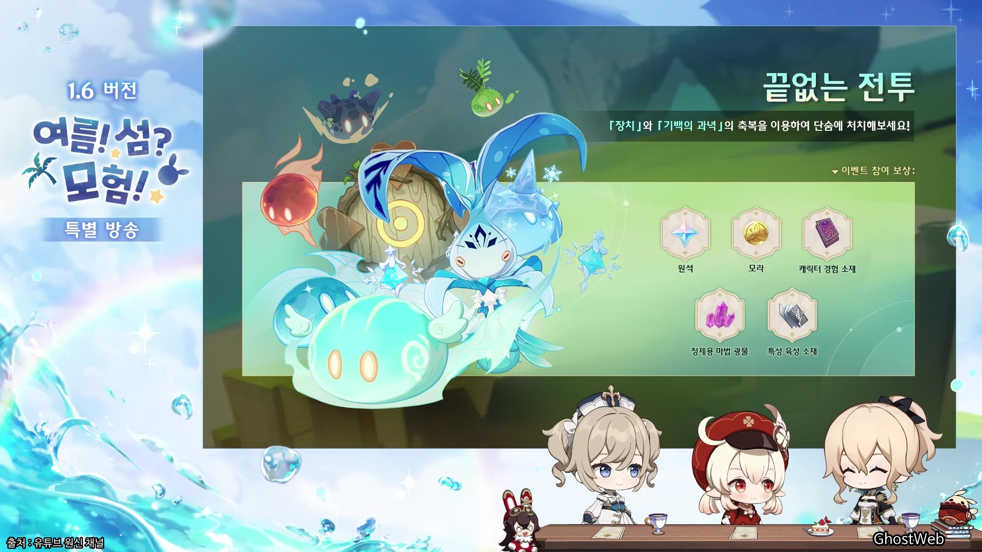 ○ 1.6버전 특별 방송 안내 (출처 : 유튜브 원신 채널)