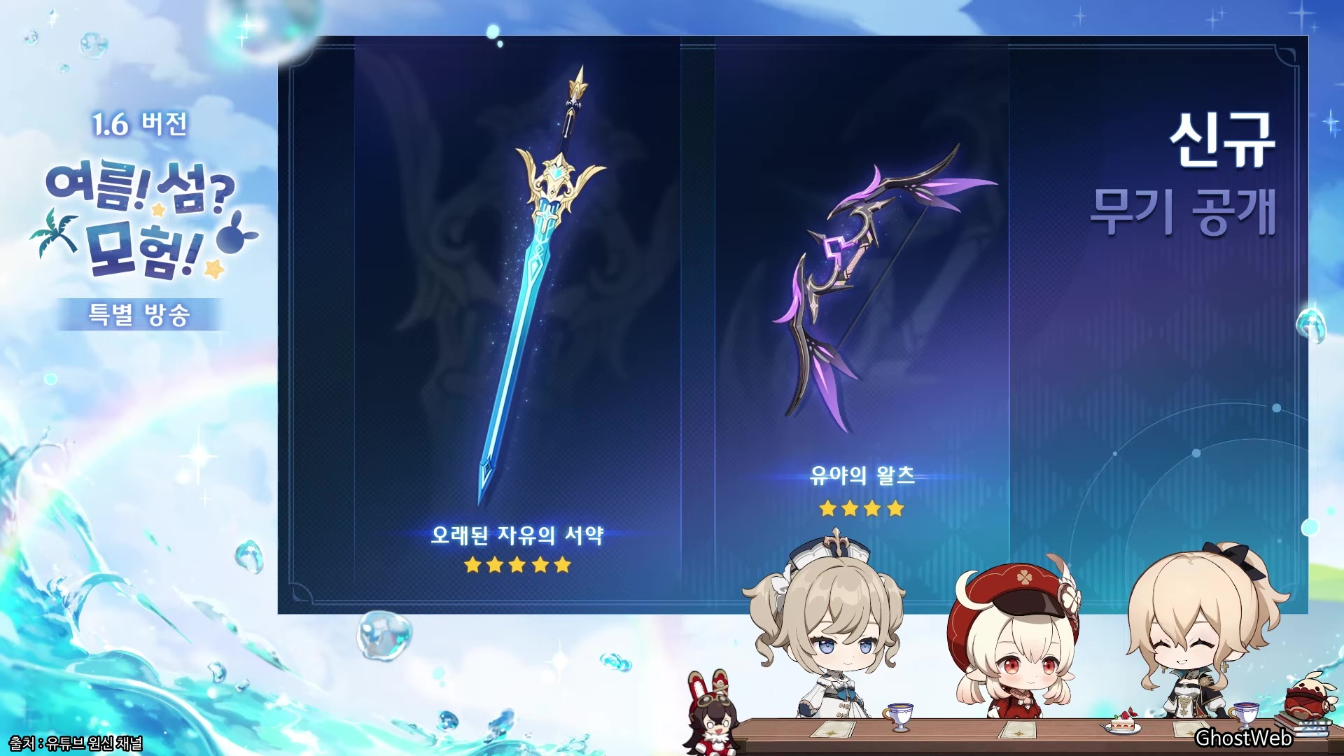 이번에 유튜브 원신 채널에서 1.6 버전 특별 방송 내용을 정리해 보았어요.