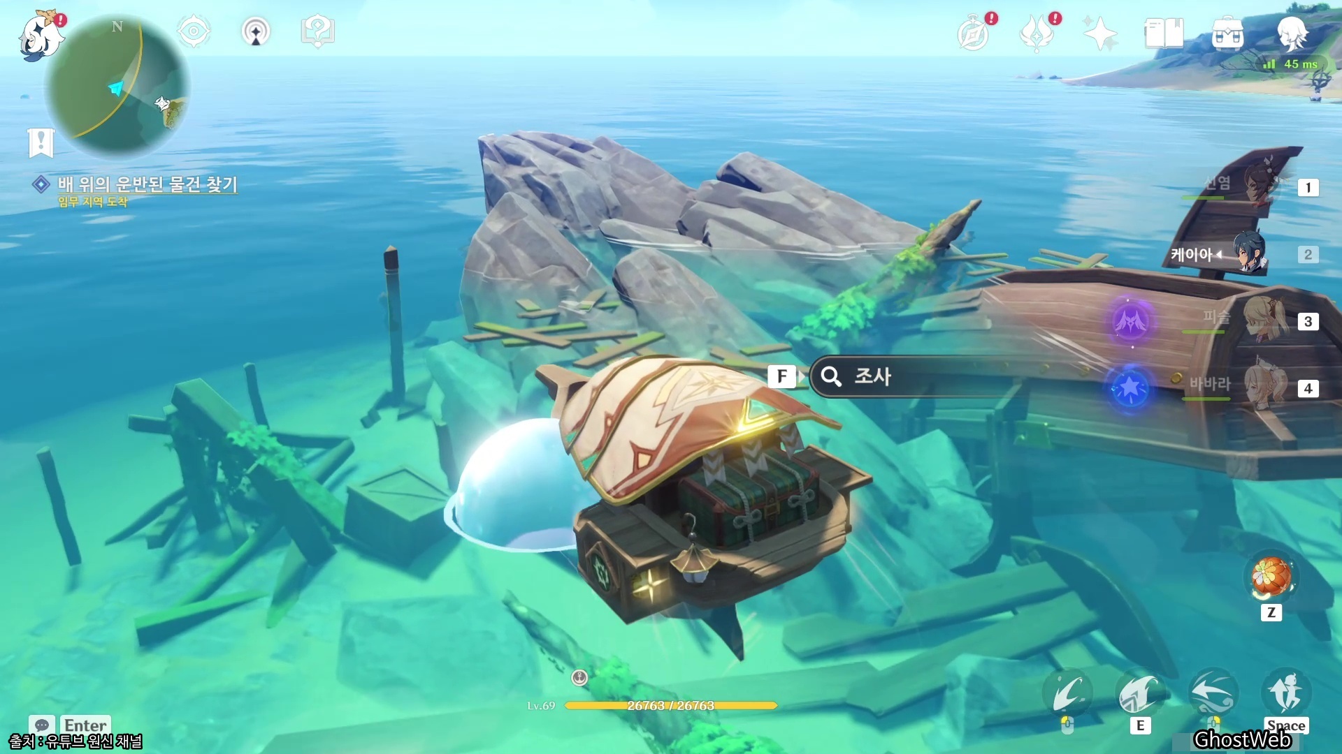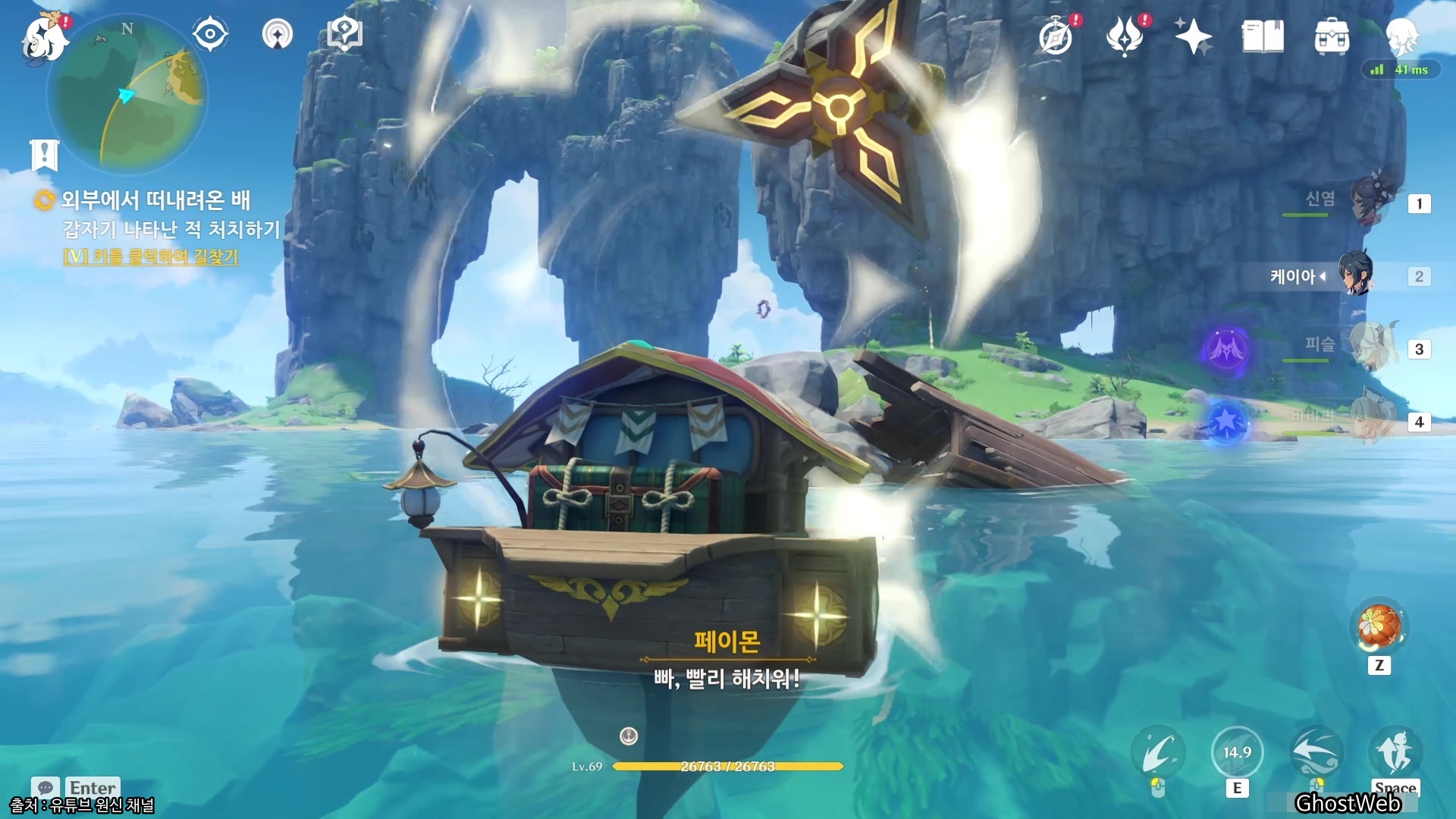 쌍둥이 섬 바로 근처 지역에 있는 파손된 배를 조사(물방울)하면 갑자기 드래곤 스파인 지역에서 볼 수 있었던 하늘을 나는 가디언(?)이 튀어나오는데... 그냥 배로 톡톡 쳐치면 처치가 가능해요.