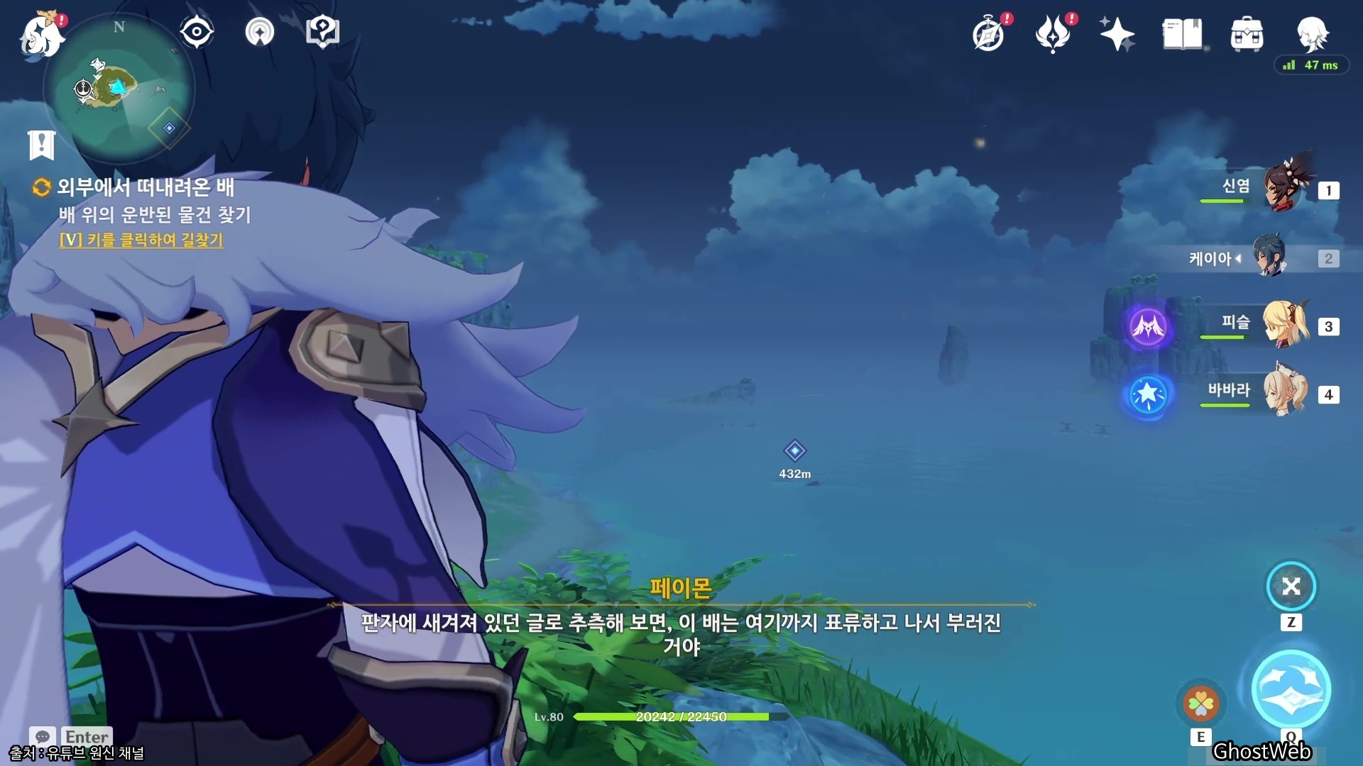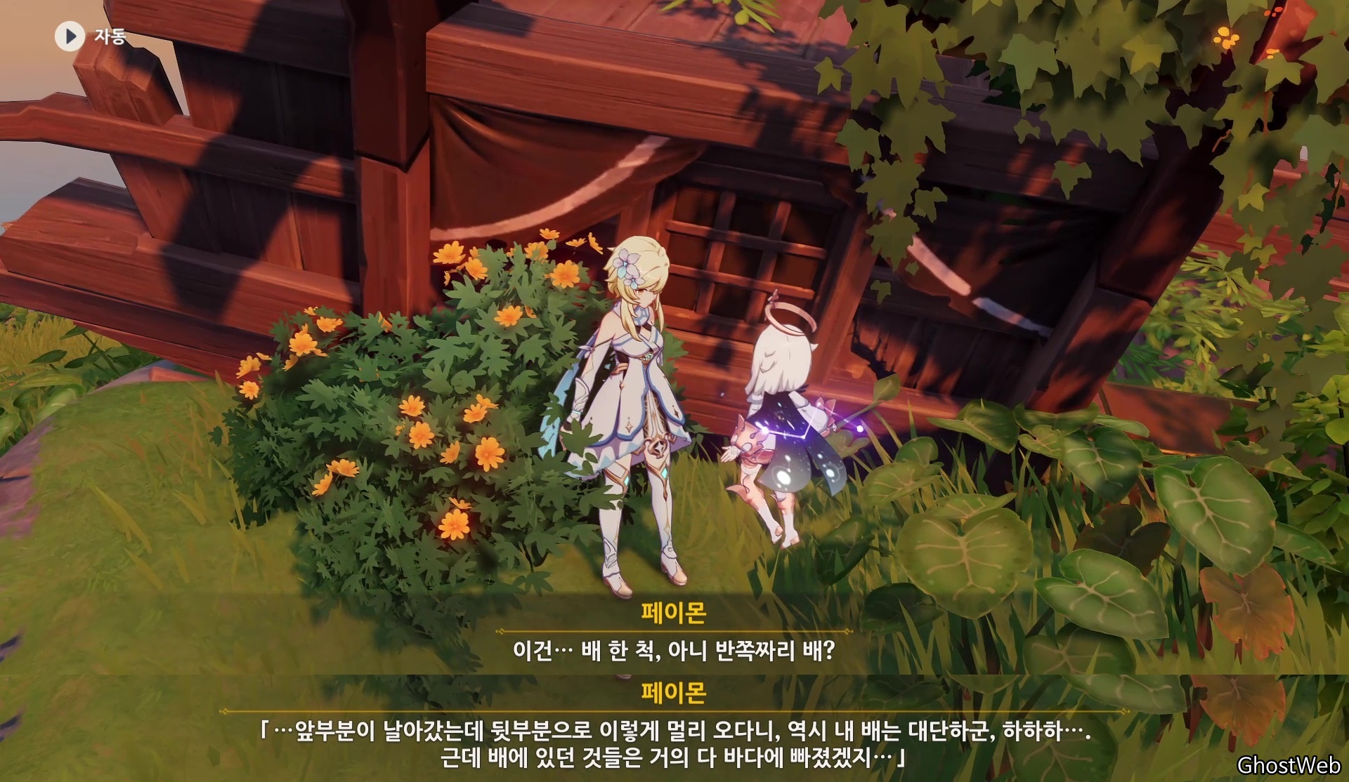 금사과 제도의 섬들을 탐험하다 보면 반쯤 부셔진 배를 발견하면서 나머지 부분을 찾는 <외부에서 떠내려온 배>라는 임무가 진행돼요.