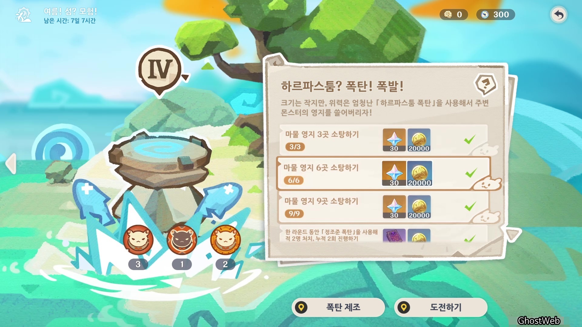 이번에는 1.6 버전의 <여름! 섬? 모험!> 스토리의 네 번째 <마지막 수수께끼! 숨겨진 있던 해답>을 완료하면 진행할 수 있는 <하르파스툼? 폭탄! 폭발!> 이벤트의 진행 방법과 폭탄의 사용 방법을 알아보도록 할게요.