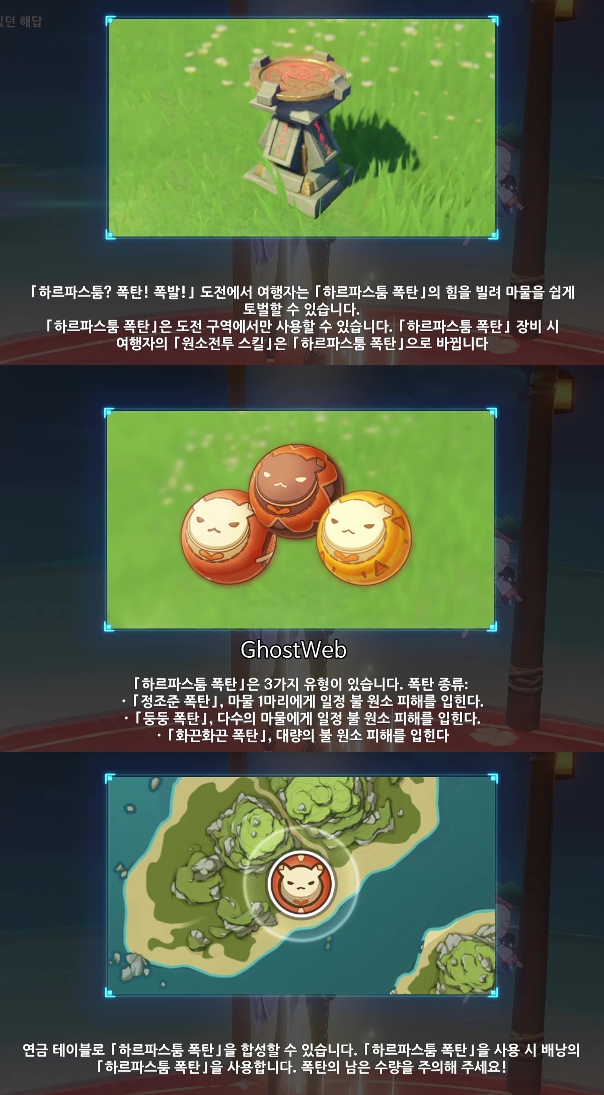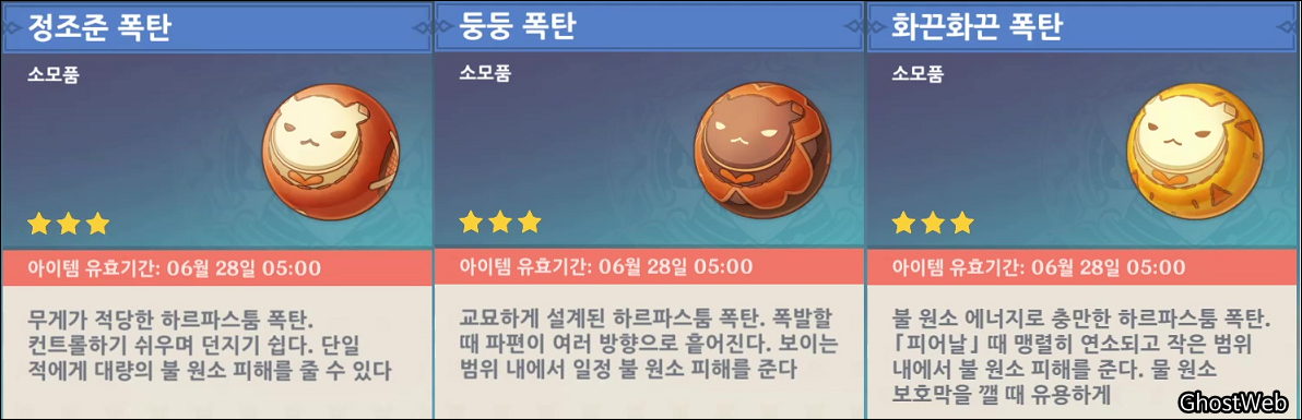 이벤트에서 사용할 수 있는 하르파스툼 폭탄의 종류는 총 3가지로 모두 합성대에서 합성을 통해 얻을 수 있으며, 폭탄 사용은 아쉽게도 이벤트 구역에서만 사용할 수있어요.
