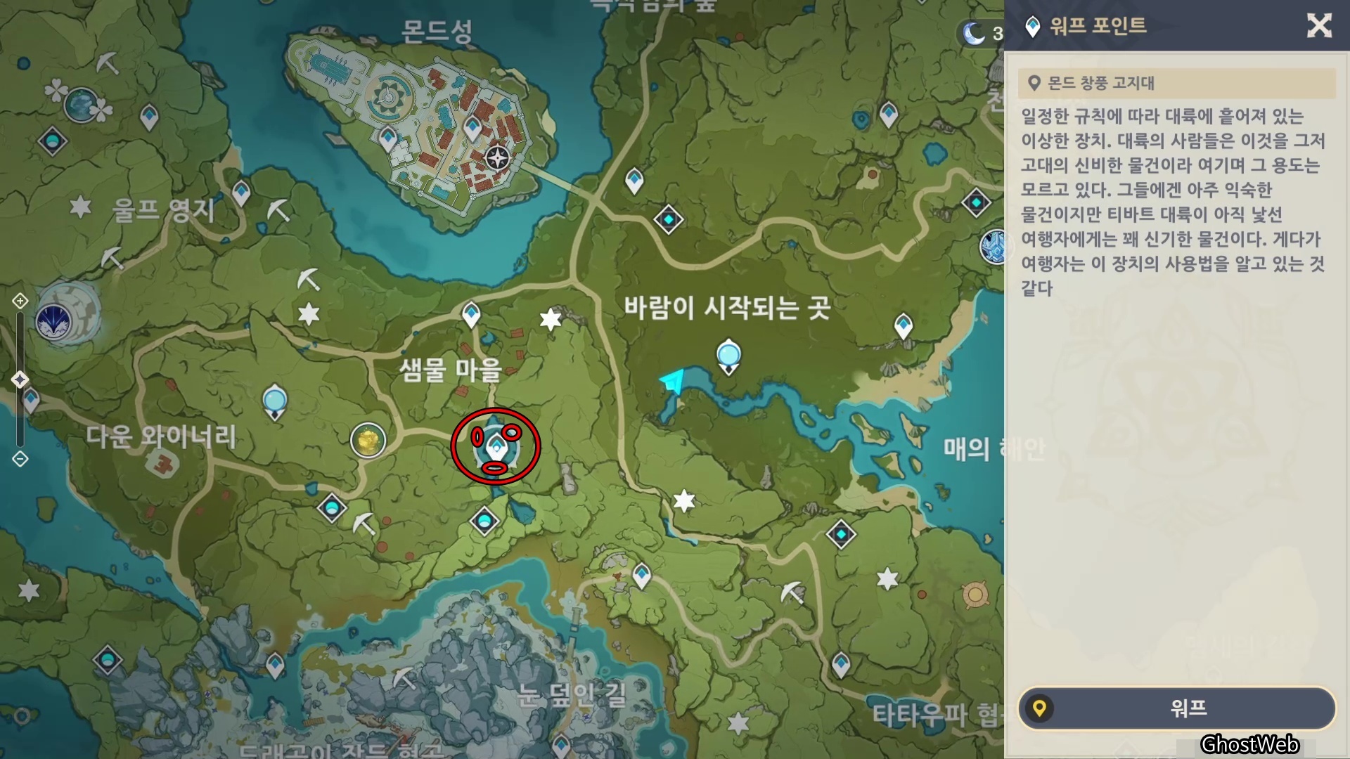 워프 포인트로 이동하여 손 쉽게 청개구리를 얻을 수 있는 곳을 정리해보았어요.