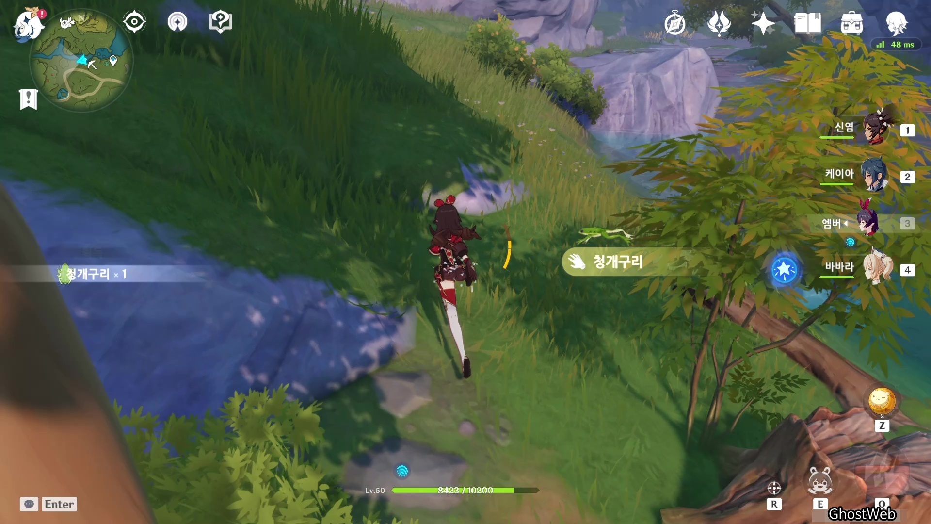 리월 항 9시 방향에 있는 물길을 따라 돌아다니다 보면 물 가에서 청개구리를 얻을 수 있어요.