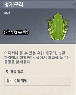 이번에는 소재인 청개구리를 얻을 수 있는 위치를 정리해보도록 할게요.