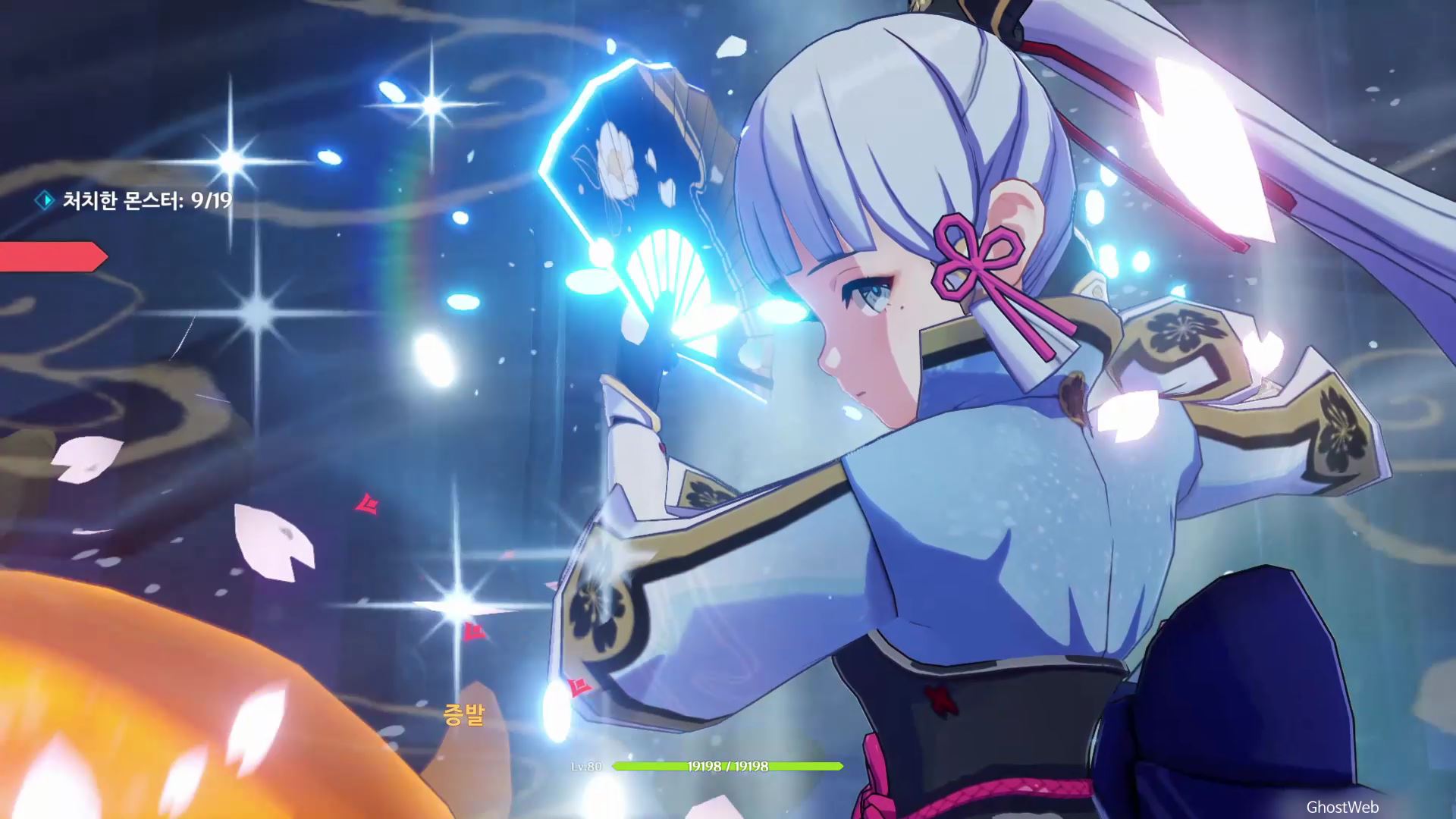 · 한기를 검에 모아 카미사토 아야카는 짧은 시간 동안 얼음 원소 부여 효과를 얻음.