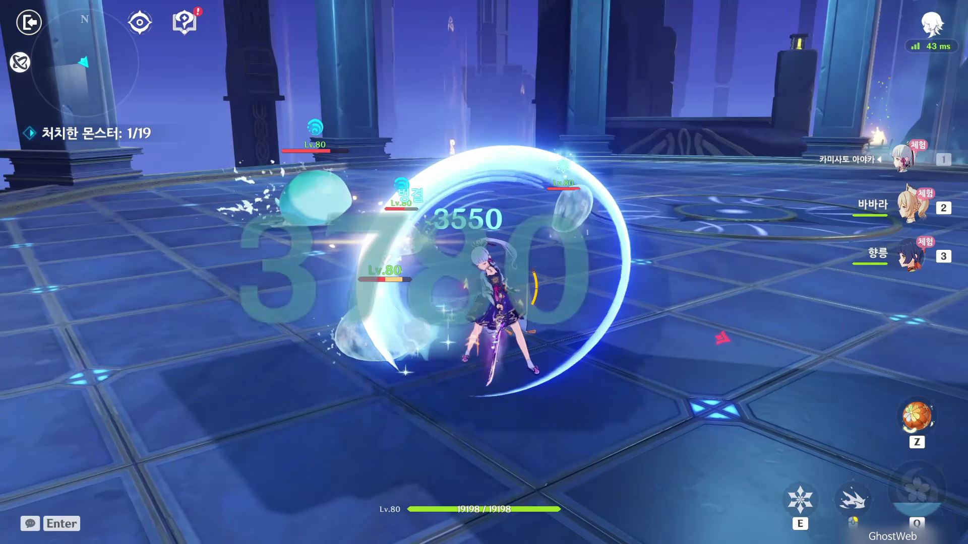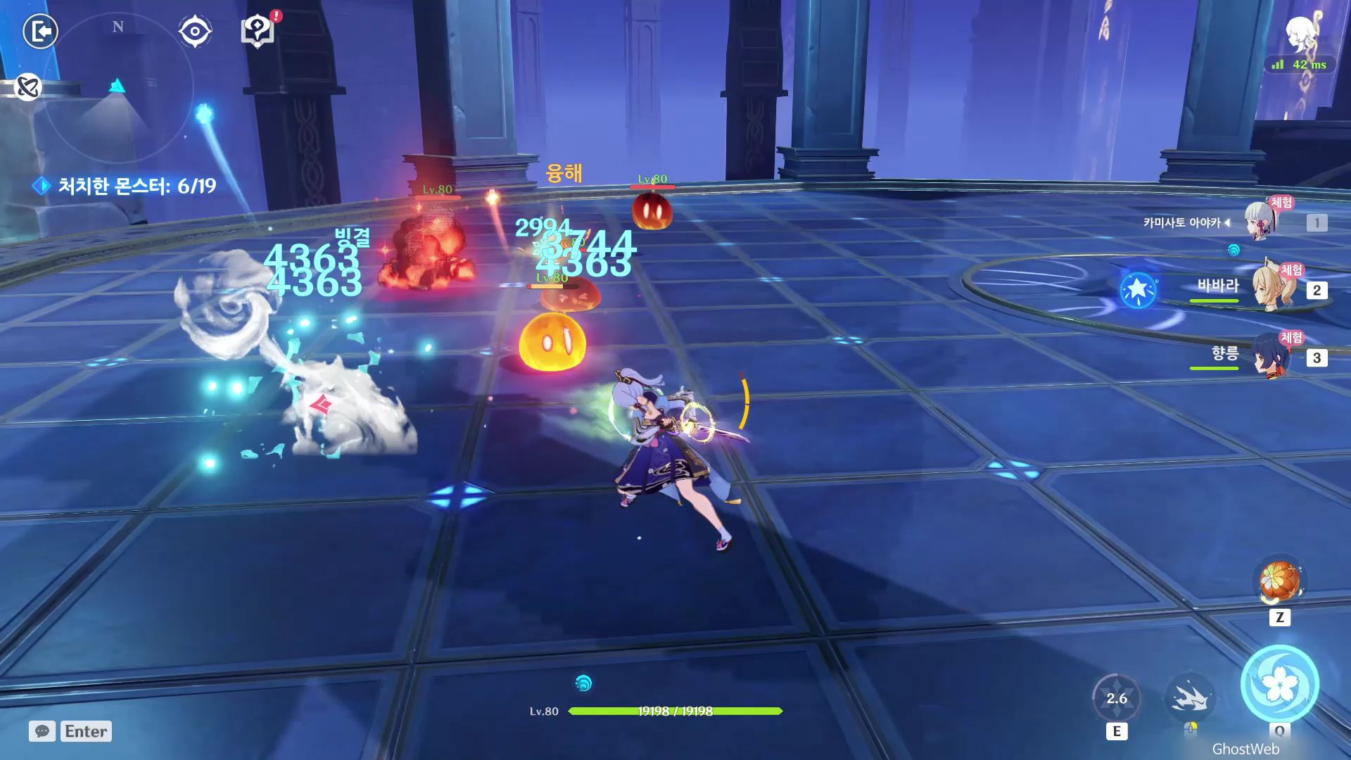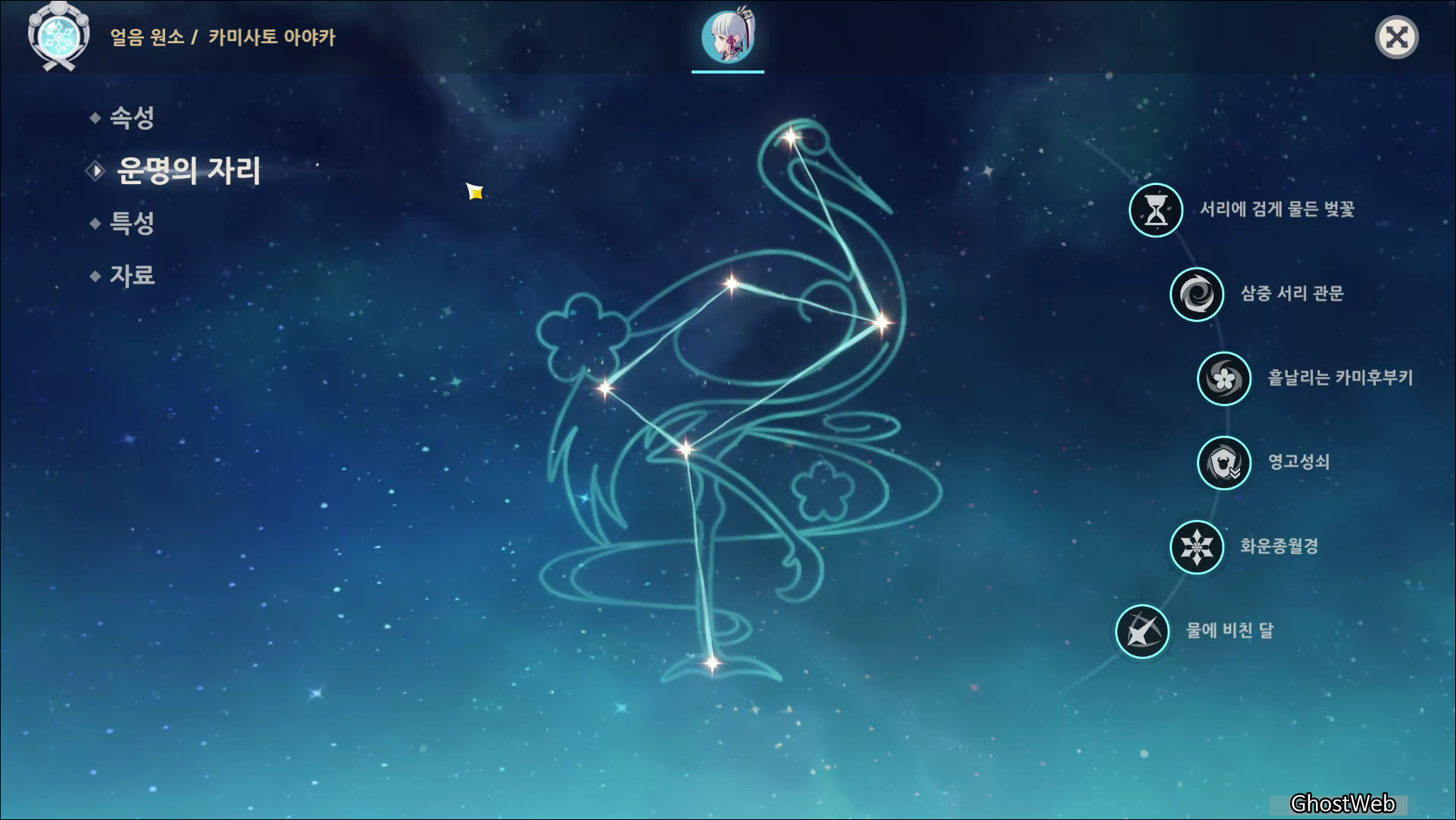 - 카미사토 아야카의 10초마다 <살얼음의 춤> 상태를 획득해 강공격으로 가하는 피해가 298% 증가.