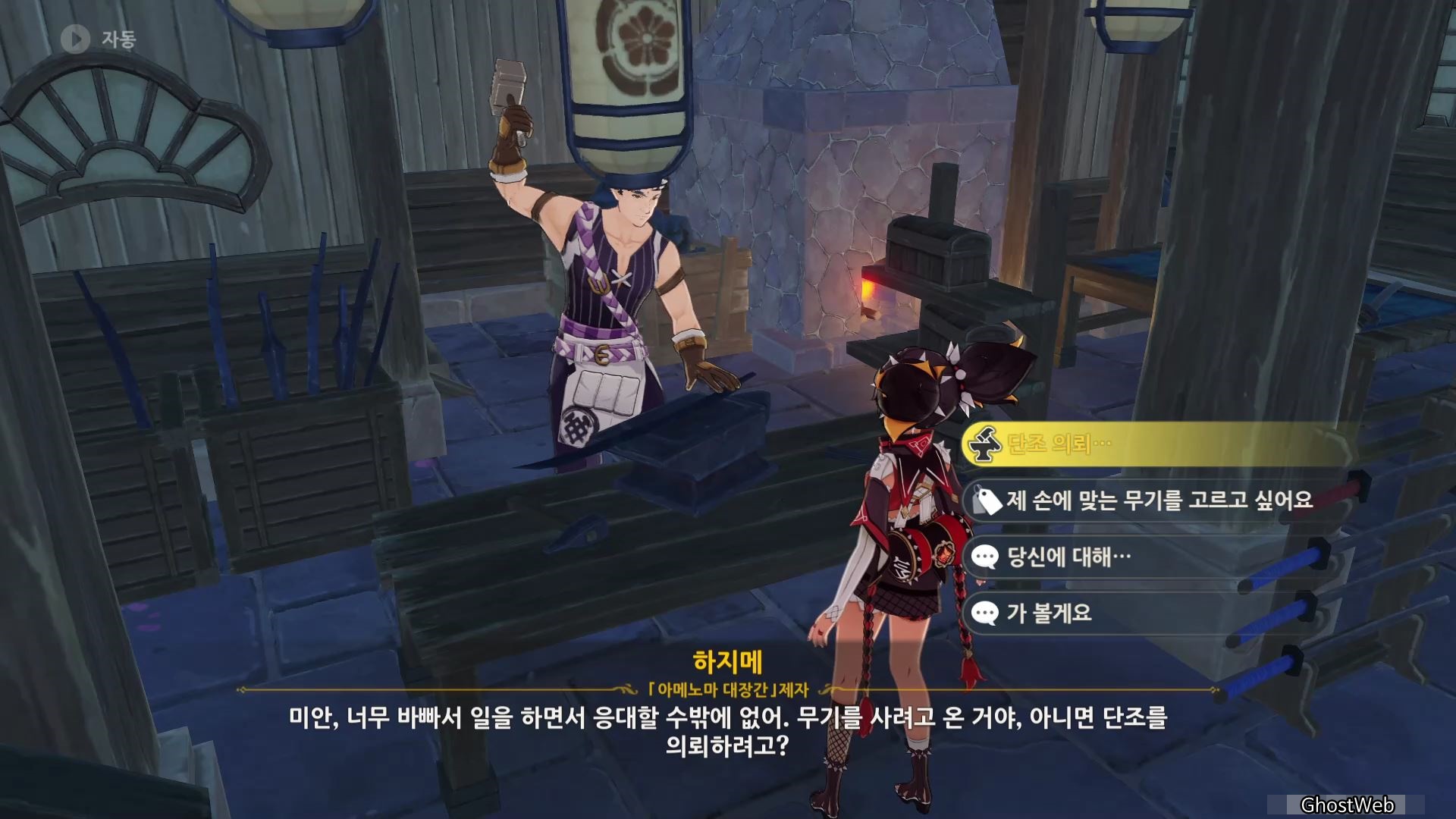 ○ 하지메 (아메노마 대장간 제자, 단조 의뢰/무기 판매)