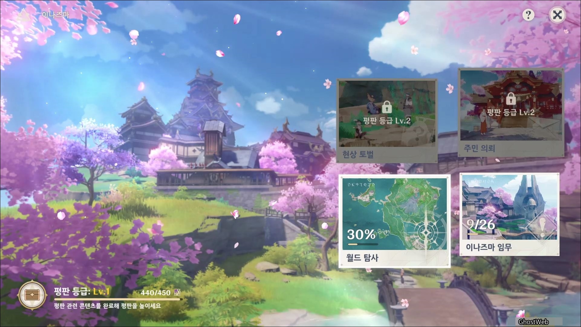 현상 토벌, 주민 의뢰, 이나즈마 임무, 월드 탐사 등을 수행하여 포인트로 평판 등급별로 보상을 얻을 수 있어요.