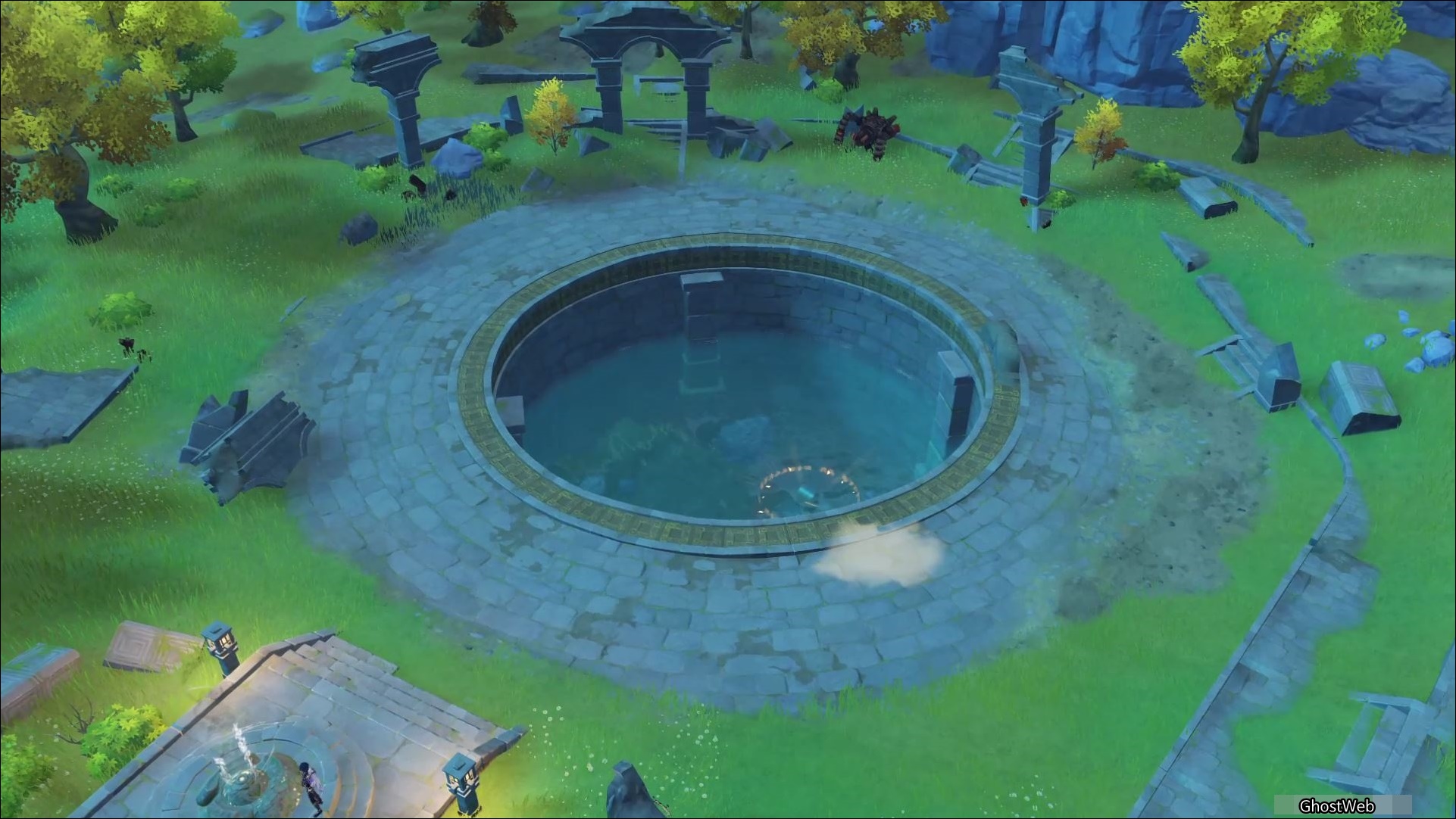 유적 가디언 3대를 전부 처리하고 원형 유적의 장치를 작동하면 가운데 있는 물 웅덩이의 물이 빠지며 보물 상자 3개에서 보상을 얻을 수 있어요.