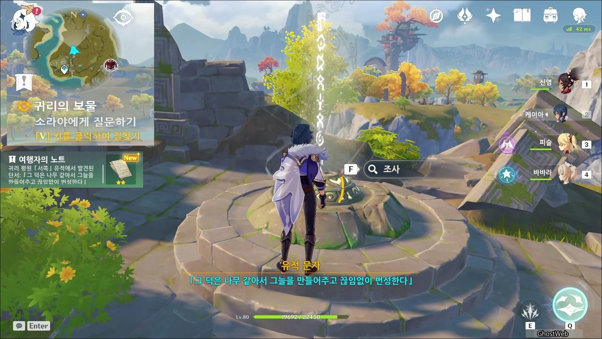 소라야와 이야기가 끝나면 남겨진 정보를 찾기 위해 <고대 비석 5개>을 찾아 정보를 가져다 달라고해요.