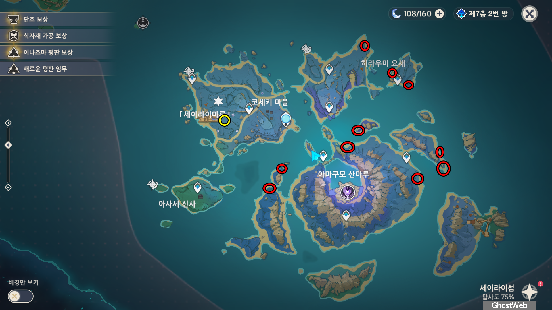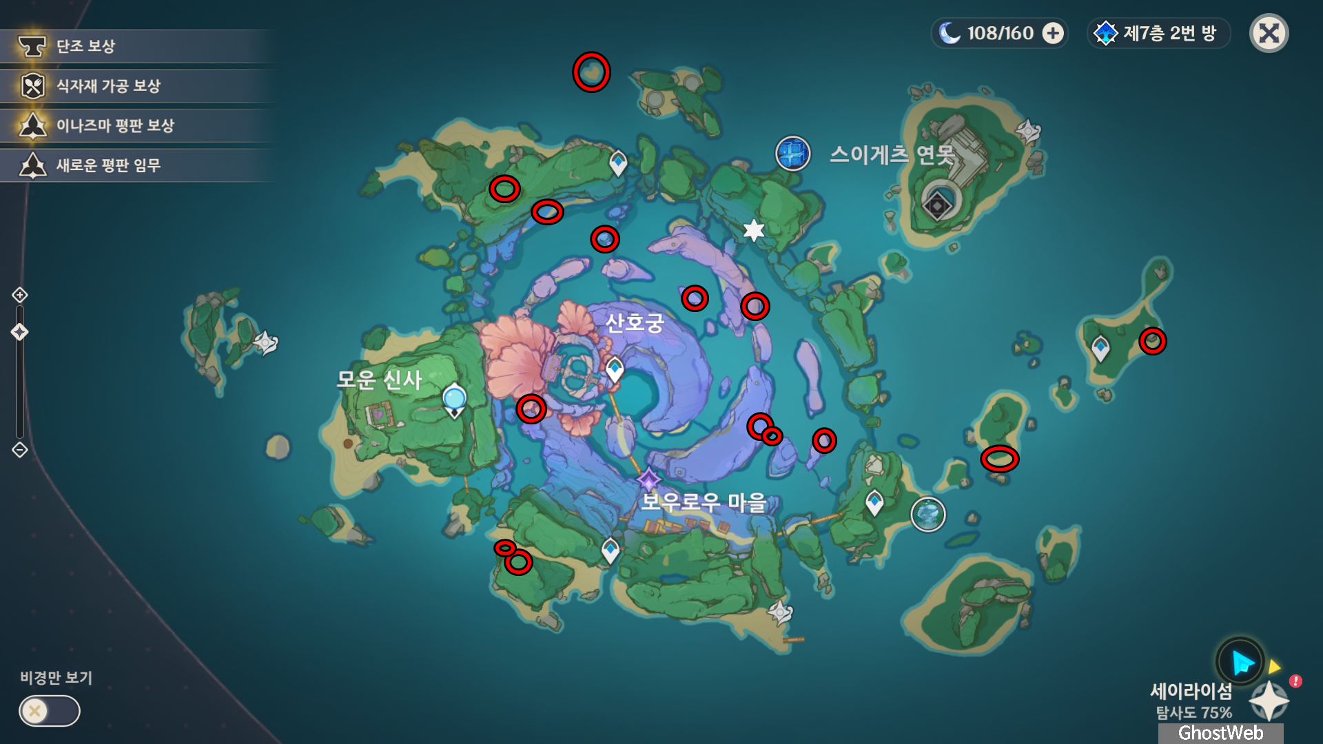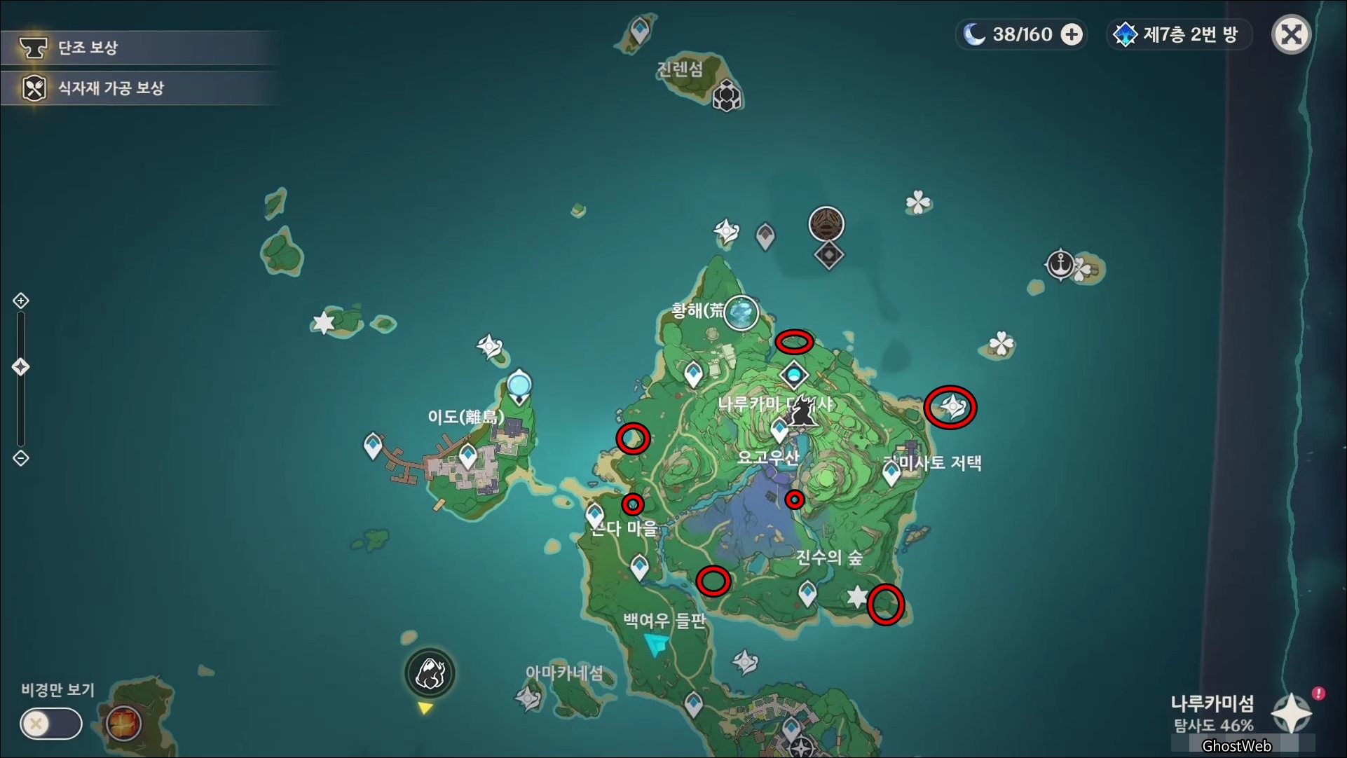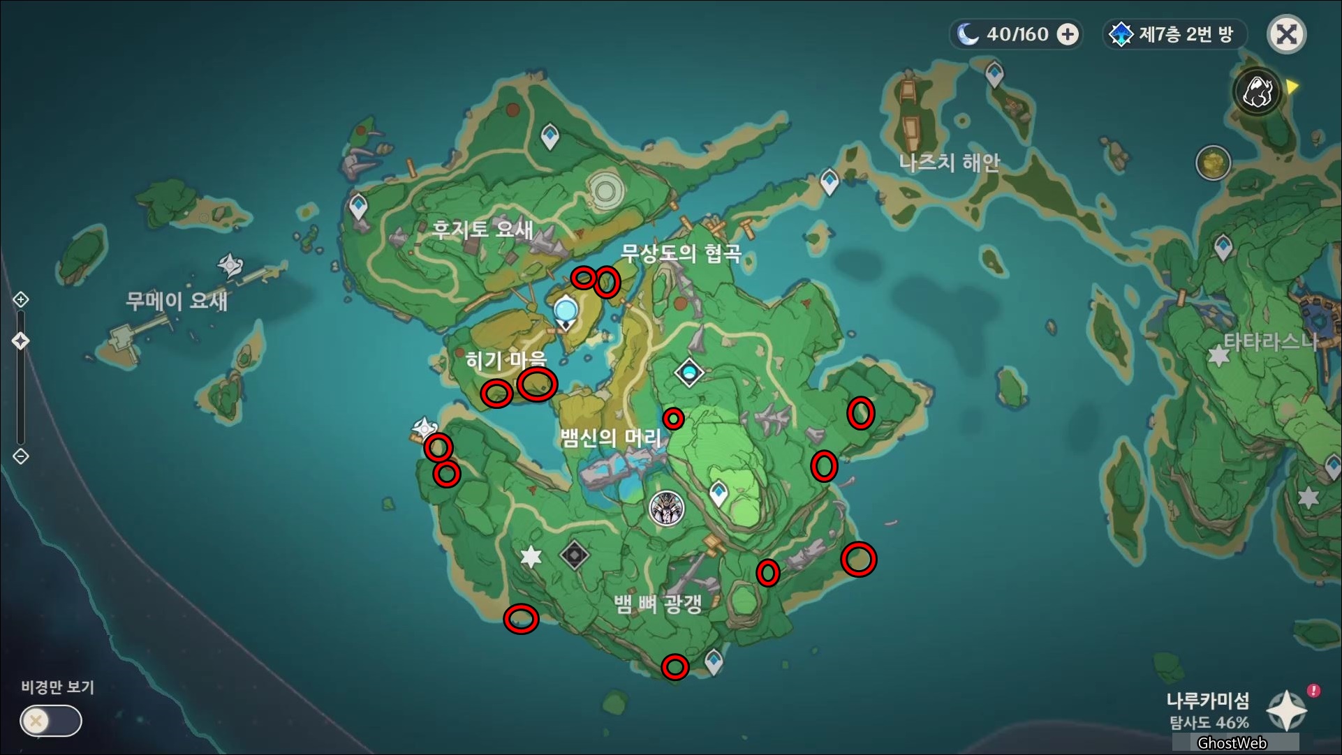 일부 표시된 부분 중 이벤트 성(보물 상자)으로 등장하는 부분이 있을 수 있어서 다시 리젠되지 않는 곳도 있으니 참고하세요.