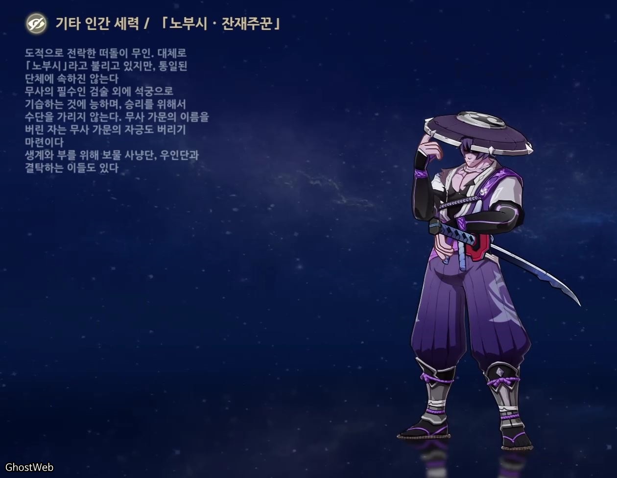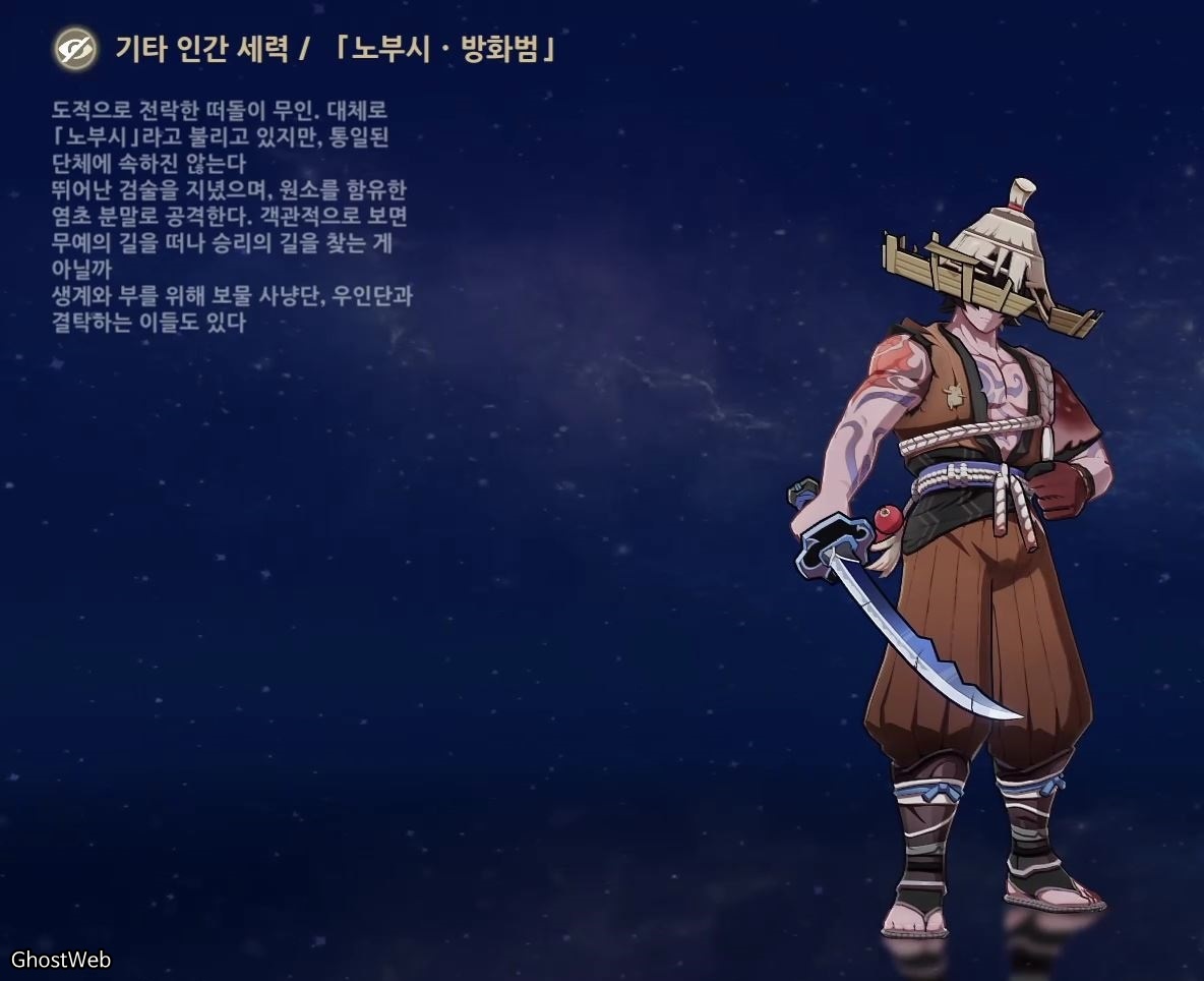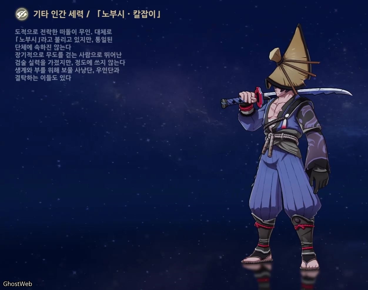 노부시패는 대부분 근접이며 가끔 석궁을 쓰기도 하며, 번개, 불 공격을 하기도 해요.